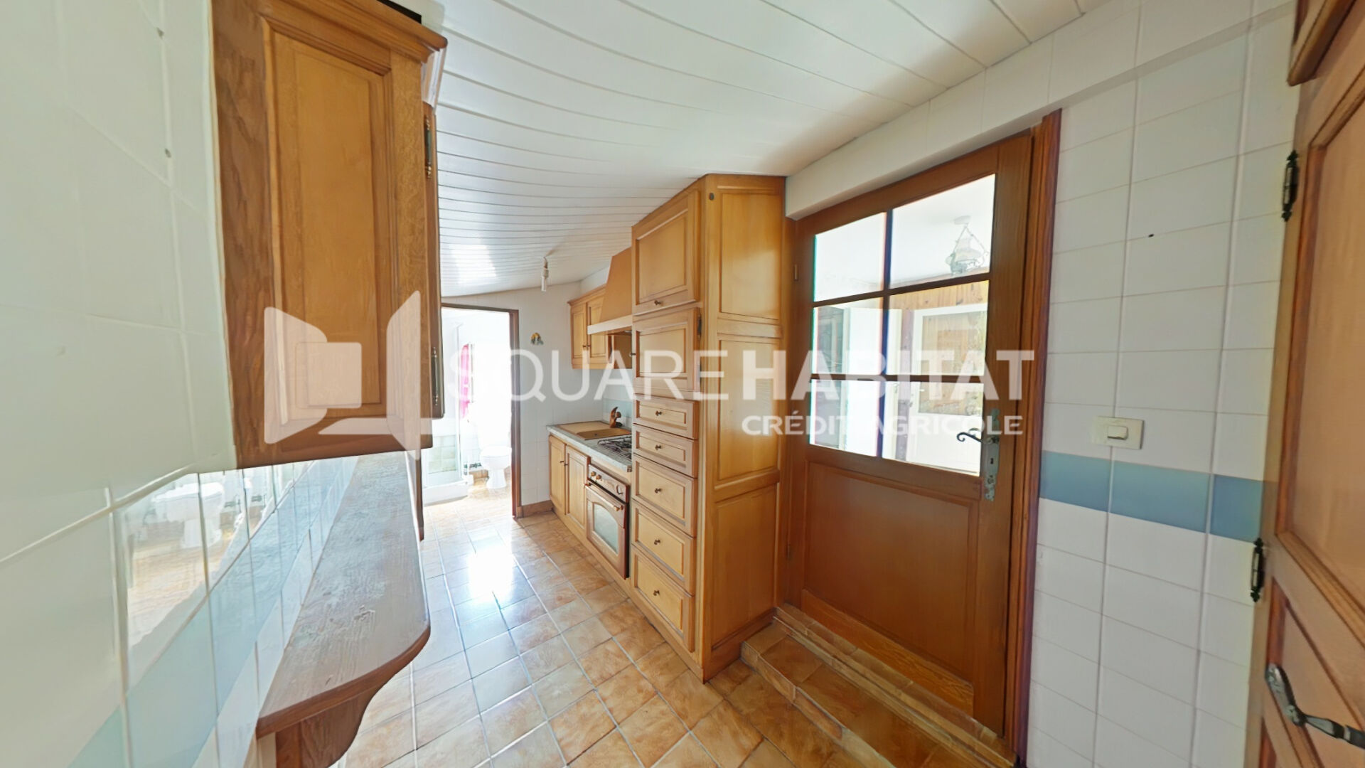 Il se compose d'une entrée dans salle à manger, salon, 2 chambres, cuisine aménagée équipée, salle d'eau avec wc. A cela s'ajoutent de nombreuses dépendances attenantes ( garage, remise, atelier), offrant un beau potentiel d'agrandissement.