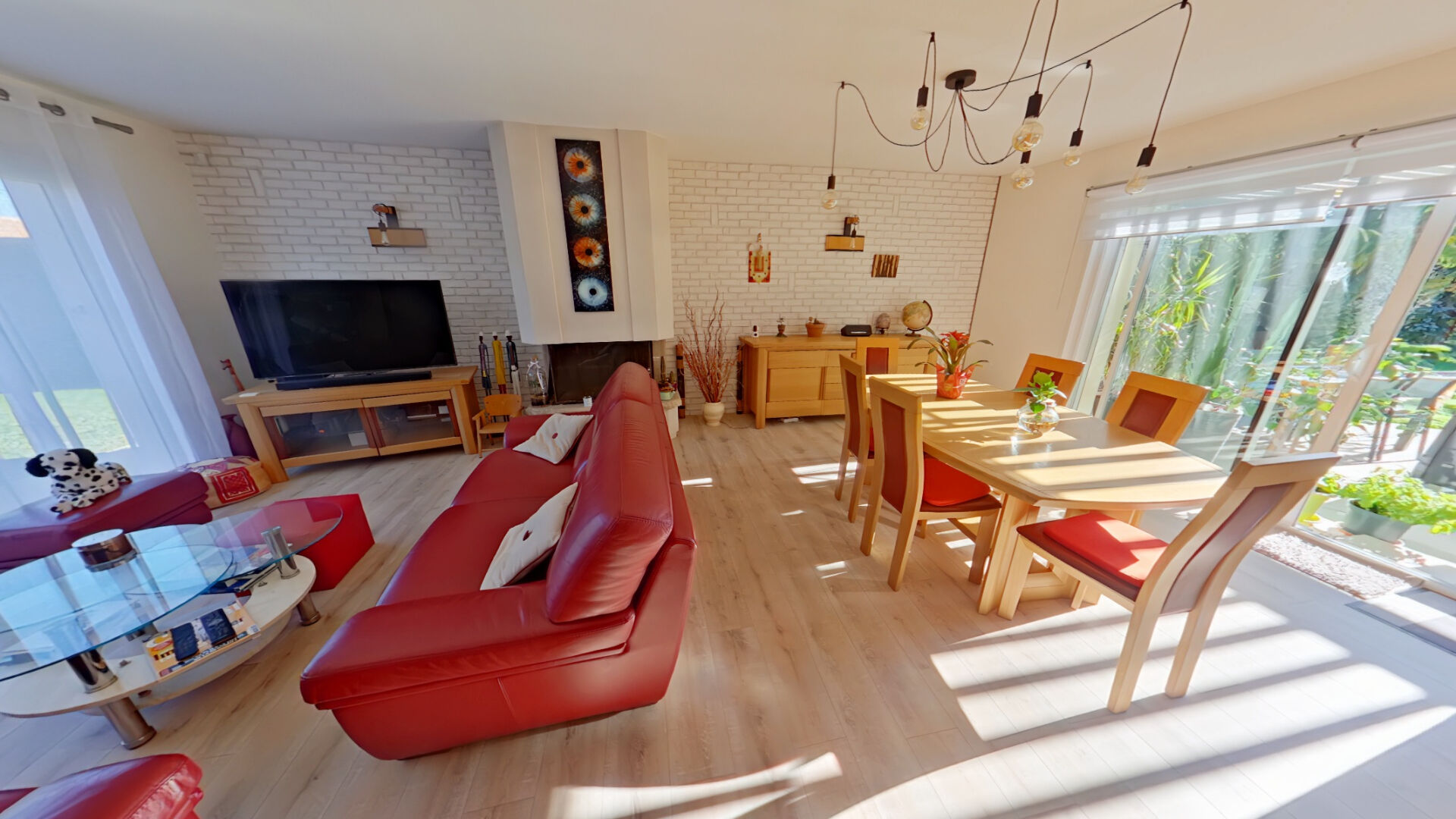 Dès l'entrée, vous serez séduit par un vaste salon-séjour lumineux ouvert sur une cuisine aménagée et équipée d'environ 55 m², idéale pour partager des moments conviviaux.