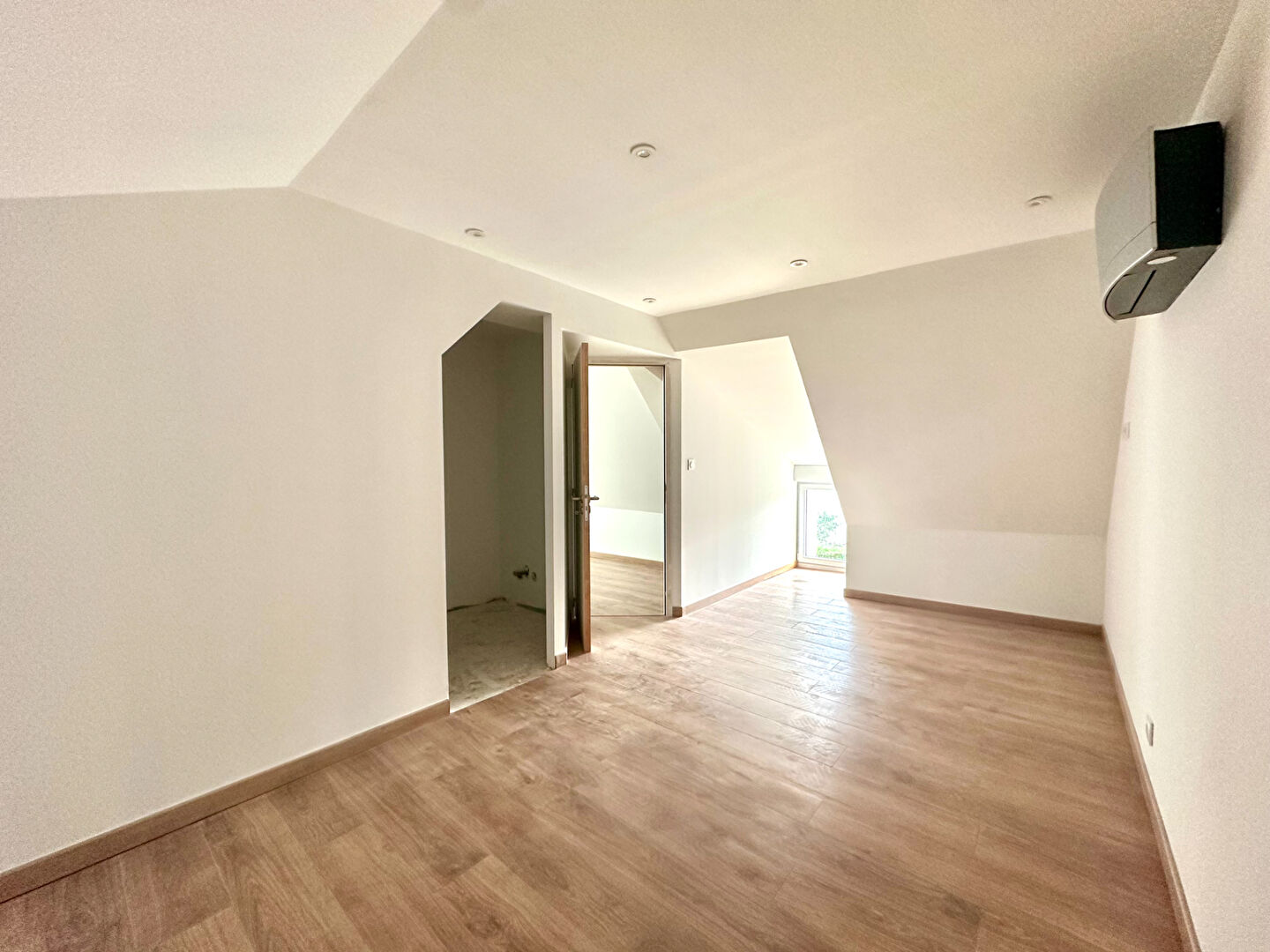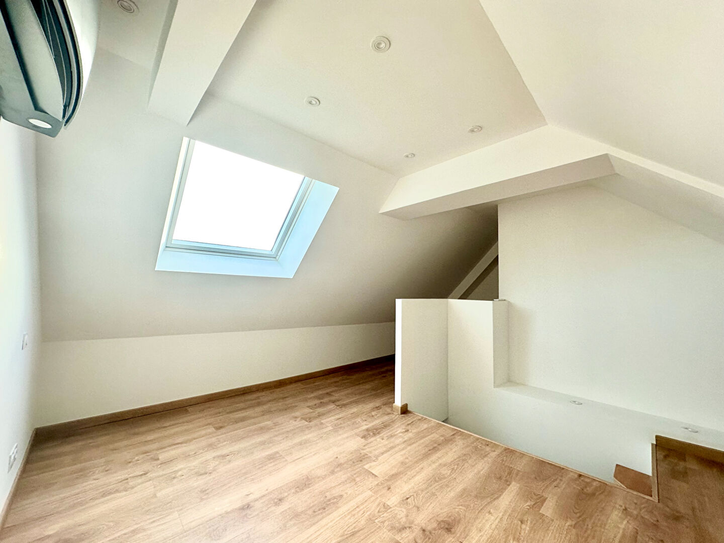 A l'étage, une seconde chambre avec sa salle d'eau attenante (à finir d'aménager) ainsi qu'un espace bureau (pouvant être transformé en 3ème chambre) complètent le tout.