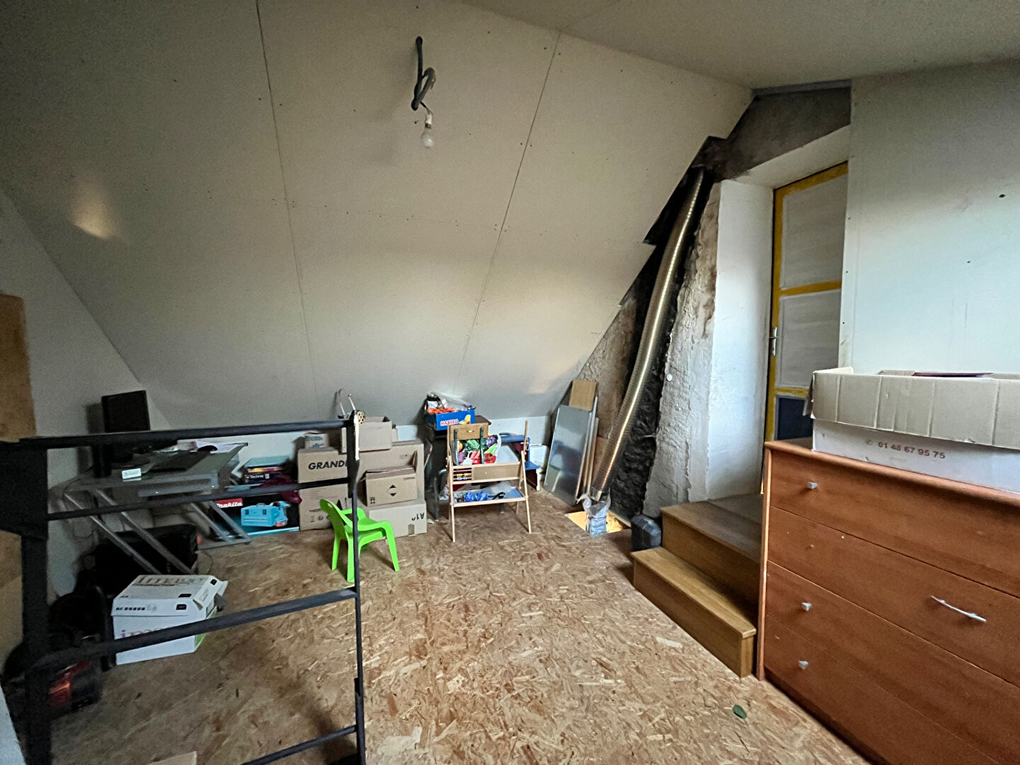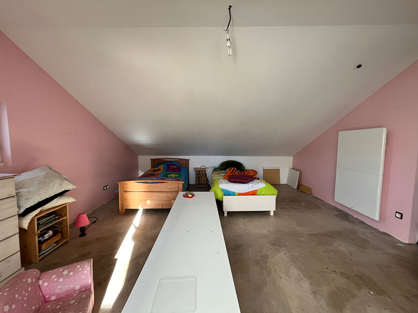 À l'étage, un palier dessert une grande chambre offrant de beaux volumes.