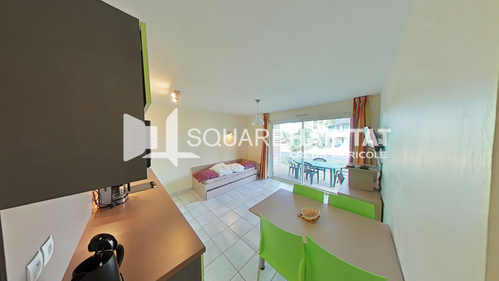 Les + : TF.25: 164Euro ( avec ordures ménagères) - piscine extérieure chauffée, aire de jeux pour enfants et un parking, sont à la disposition des résidents. Entièrement équipée au rez-de-chaussée - VISITE VIRTUELLE SUR DEMANDE !