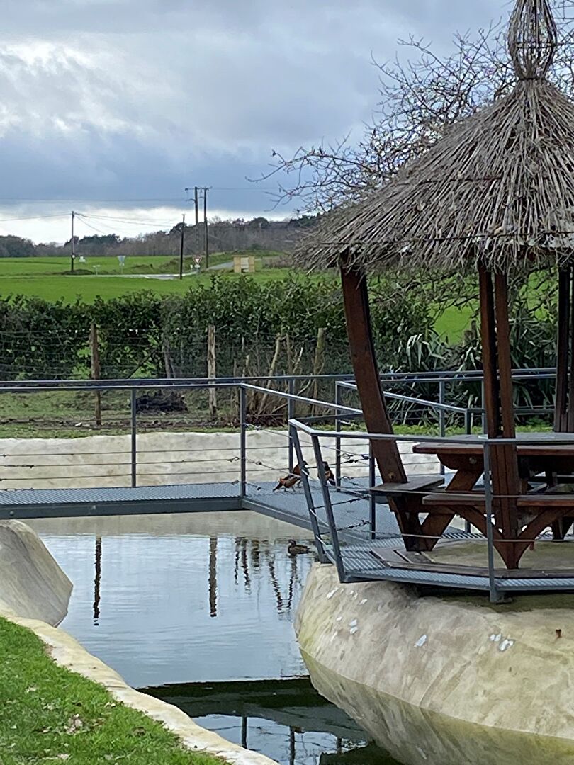 L'habitation principale se compose en rez-de-chaussée d'une entrée desservant une vaste salle à manger équipée de son poêle à granulés, ouverte sur la véranda apportant une belle luminosité et une cuisine aménagée attenante à l'arrière-cuisine. Toujours sur ce niveau, vous trouverez une salle de bains avec douche et double vasque, une chambre et un bureau. Au premier étage, une grande chambre traversante de 30 m² avec son point d'eau et une mezzanine de 40 m² aménagée en salon avec écran de projection.
