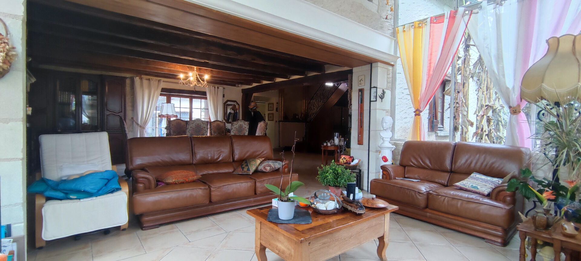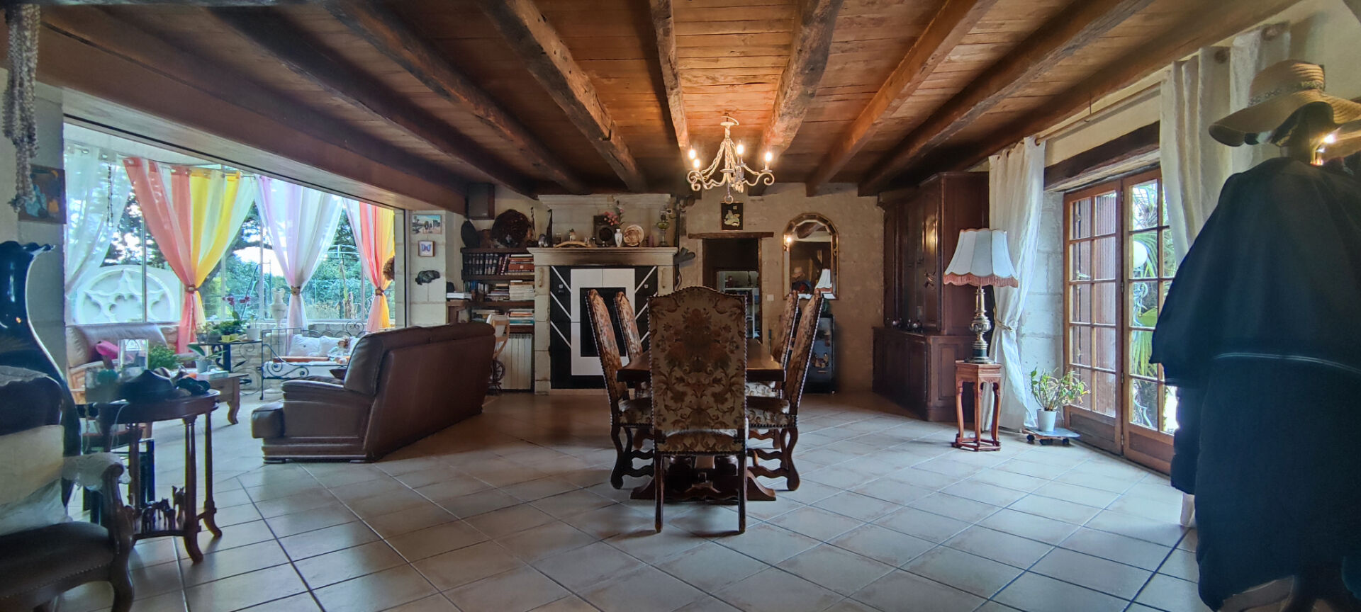 La salle de réception avec cheminée ouverte, vous permet d'accueillir de nombreux convives ou d'y stocker vos véhicules. Vous bénéficiez en plus d'un triple garage.