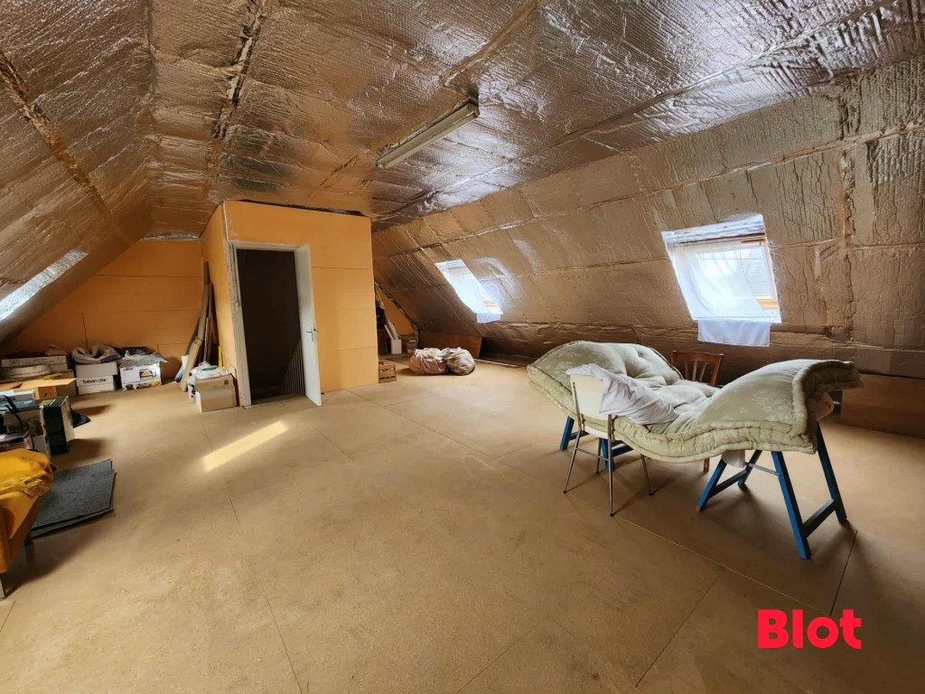 A l'étage, l'escalier dessert des combles déjà isolés et possiblement aménageable de 45m².