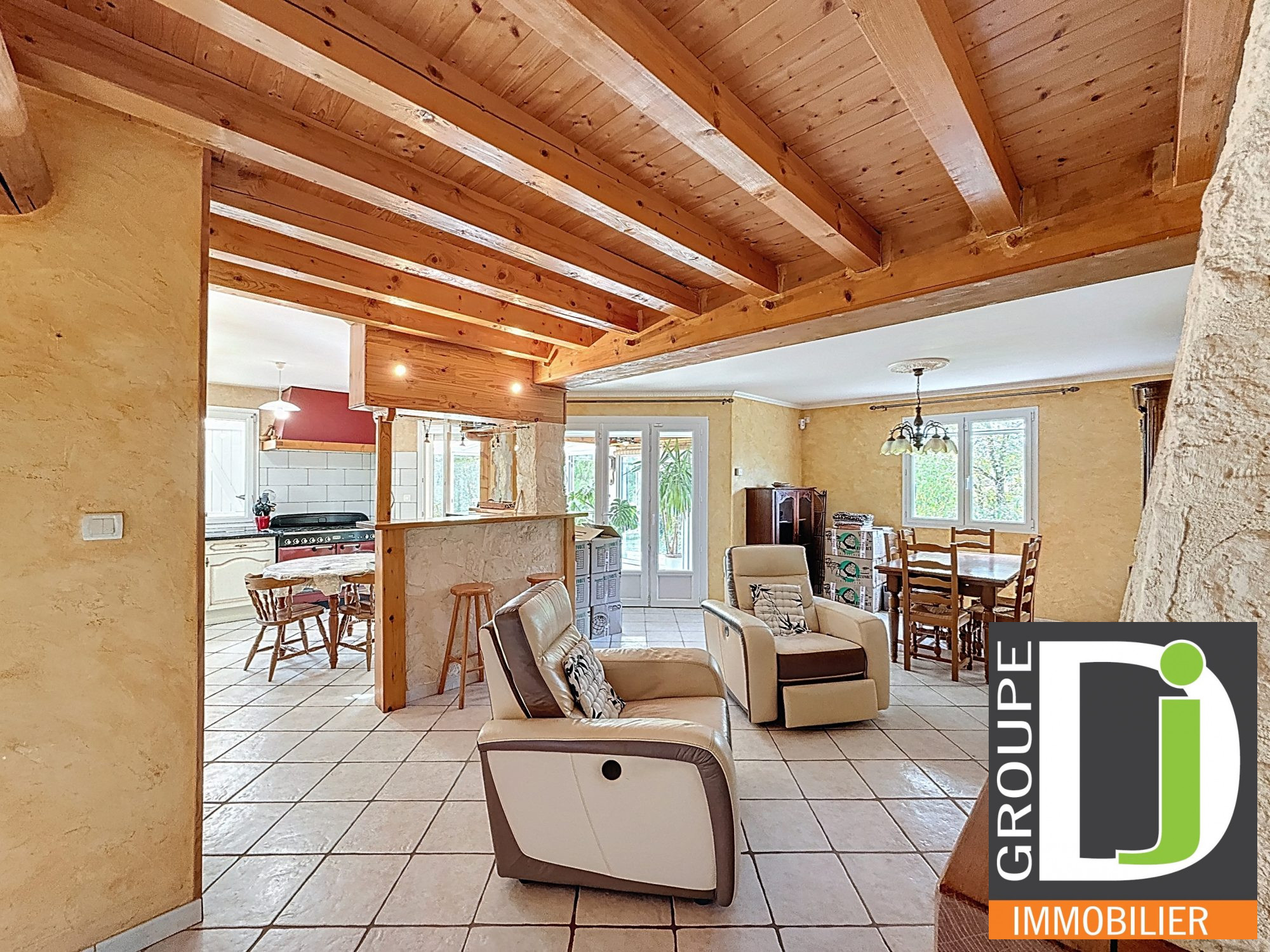 Séjour lumineux avec accès à une véranda de 18 m² attenante à la cuisine