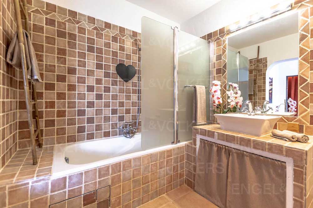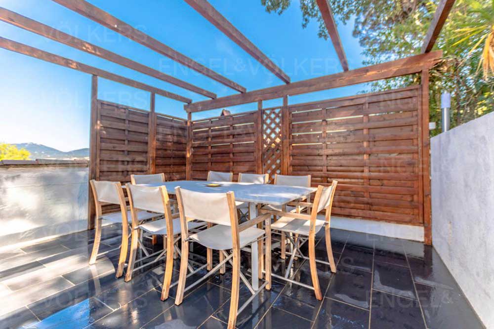 Accédez à cette charmante maison par un bel escalier débouchant sur une vaste terrasse de 40 m², aménagée avec un coin salon, une salle à manger et un espace barbecue.