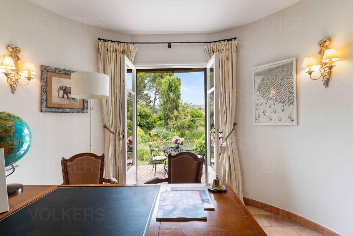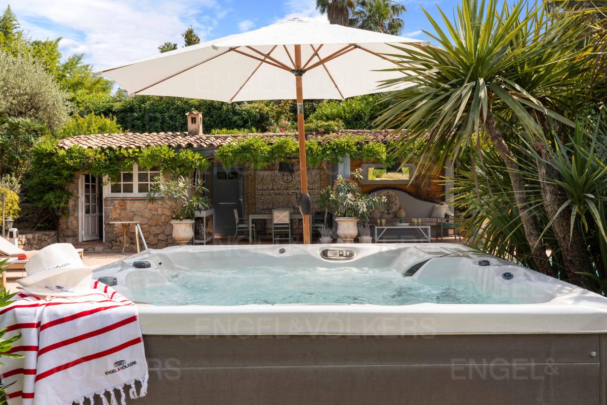A la rencontre des pays Grassois et Cannois, à quelques minutes des villages typiques d'Opio et Valbonne, se cache cette demeure de charme au coeur d'une véritable oasis d'eau et de verdure, dans un domaine sécurisé à moins de 30 mn de l'aéroport international de Nice.