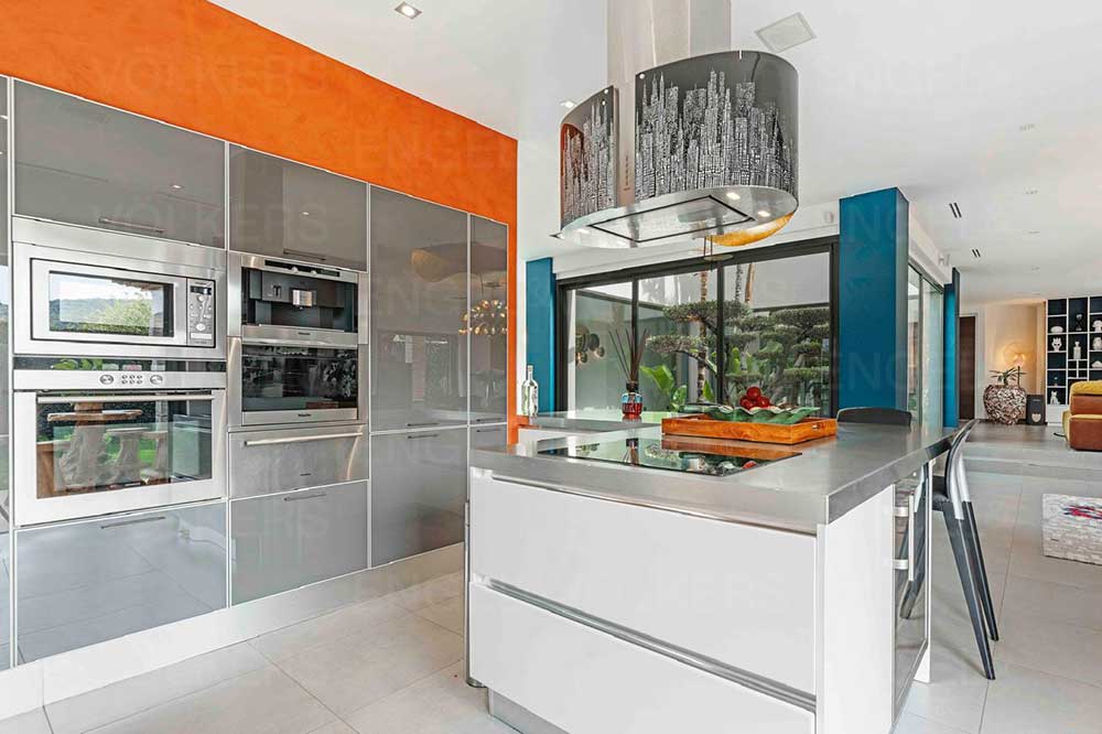 Conçue avec des matériaux de qualité et un sens aigu du détail, la propriété se compose d'une lumineuse pièce de vie articulée autour d'un patio central, d'un salon-salle à manger, d'une cave à vin de caractère, d'une buanderie, et d'une cuisine ouverte entièrement équipée.