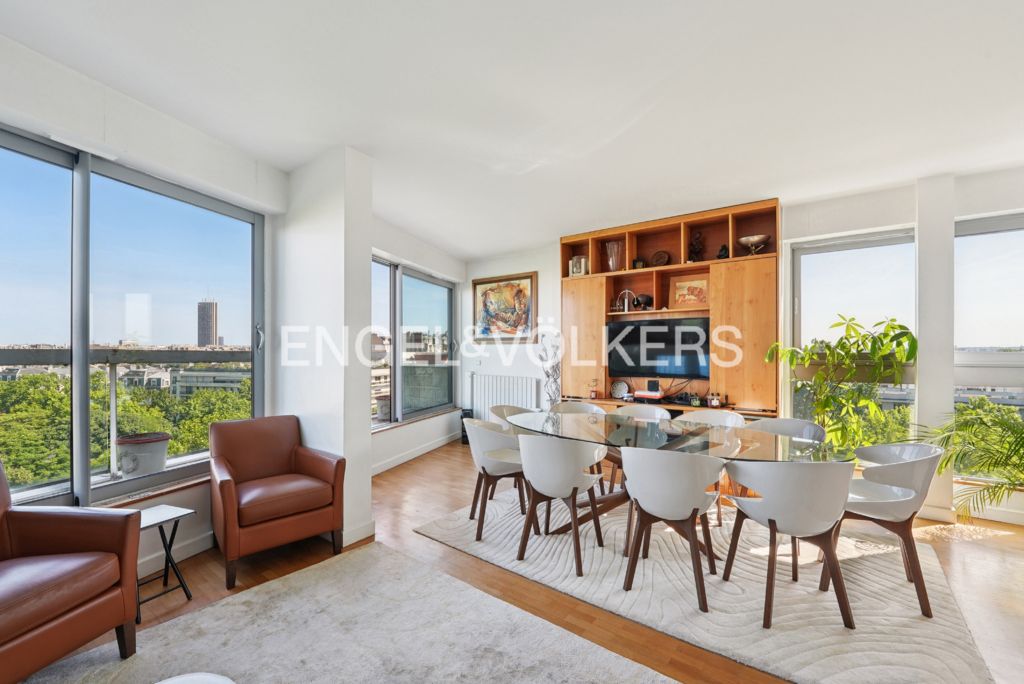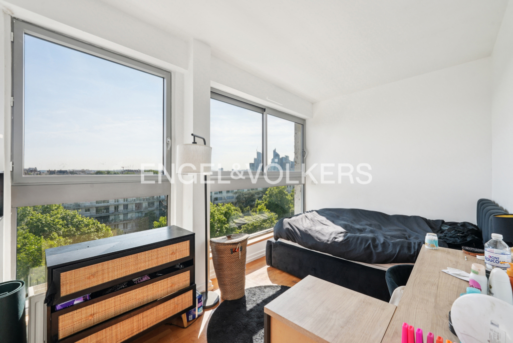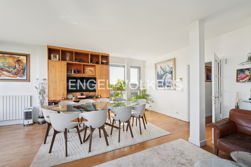 Entre ciel et ville, cet appartement offre un cadre de vie rare, alliant calme, lumière et vues dégagées. D'une superficie de 100m², il bénéficie d'une orientation privilégiée qui permet d'apprécier, depuis chaque pièce, de belles perspectives sur Paris, La Défense et la Tour Eiffel.