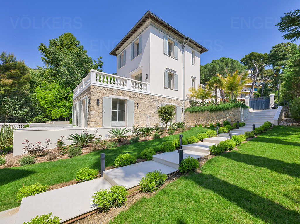 Nichée dans un jardin paysager d'environ 1 750 m², la propriété se compose de deux villas de style Belle Époque, toutes deux rénovées avec soin selon les normes les plus élevées.
