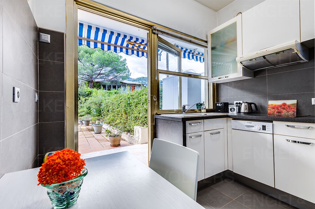 La cuisine séparée est également exposée coté jardin permettant de profiter de cet espace de vie extérieur.