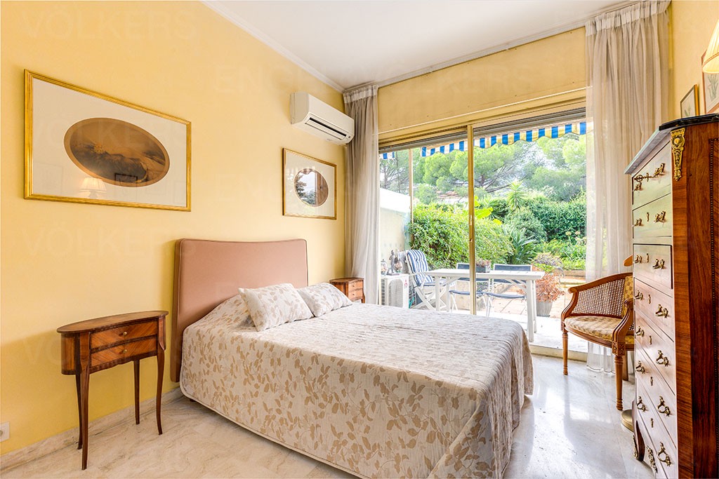 Dans une résidence de standing avec piscine et court de tennis au coeur du Cap Martin, appartement traversant de deux pièces avec possibilité de transformation trois pièces.