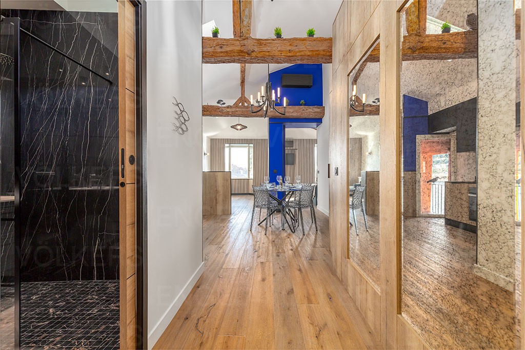 Dès l'ouverture de la porte, sur la gauche, une chambre avec placard intégré, une salle d'eau avec douche à l'italienne et wc. Dans la continuité, une grande pièce de vie avec cuisine sur-mesure équipée et séjour qui permet d'admirer la vue 'carte postale' que cet appartement nous offre. Parking à 100m.
