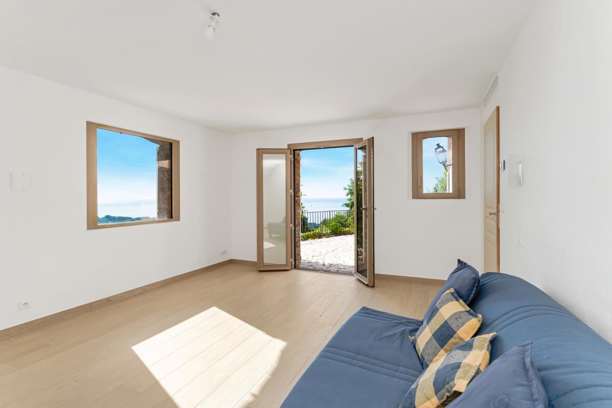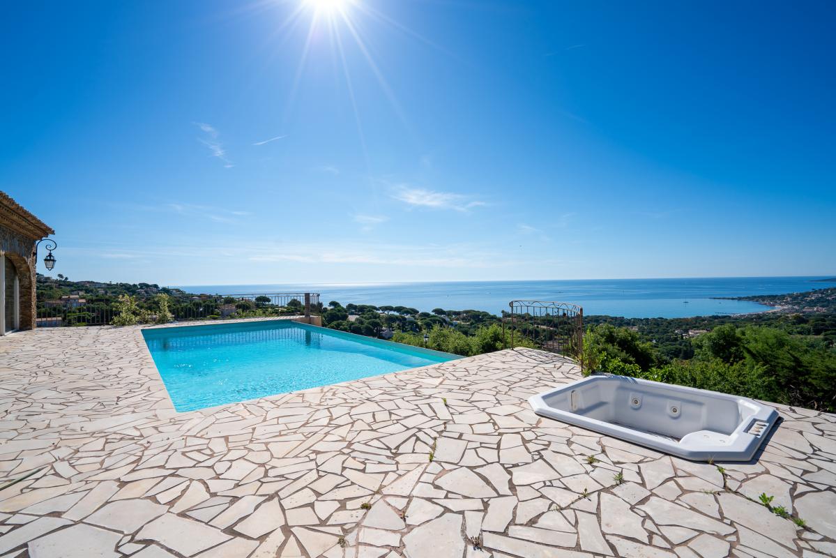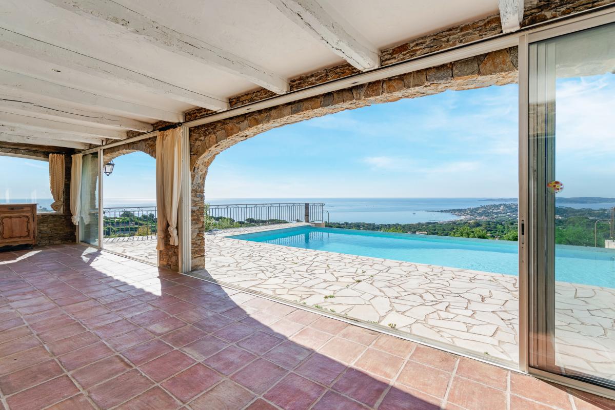 Dans un cadre naturel préservé, à seulement quelques minutes de Sainte-Maxime, Le Mas de Pierre incarne le charme et l'élégance de l'art de vivre méditerranéen. Cette villa en pierre de 312 m² habitables, édifiée sur un terrain de 2 815 m², séduit par ses prestations haut de gamme et sa vue mer spectaculaire depuis toutes les pièces principales. De plain-pied, la villa s'ouvre sur une vaste pièce de vie lumineuse avec un salon aux volumes généreux, une cuisine contemporaine avec îlot central et de grandes baies vitrées à galandage donnant sur une terrasse couverte. Cet espace extérieur prolonge naturellement l'intérieur vers une piscine à débordement suspendue au-dessus de la Méditerranée. Un espace repas ombragé, une dépendance en pierre et une vue panoramique exceptionnelle viennent parfaire ce cadre idyllique. Toujours sur ce niveau, une chambre avec rangements, une salle de bain avec baignoire et douche, des toilettes invités, une buanderie et de nombreux rangements offrent un confort optimal. Le niveau inférieur, accessible depuis une salle de cinéma privée, accueille une suite parentale avec salle d'eau et dressing, une salle de bain indépendante avec baignoire, douche et WC, une chambre lumineuse avec placards, porte-fenêtre et vue mer, ainsi qu'une quatrième chambre avec salle d'eau privative, WC, rangements et accès direct à l'extérieur. Chaque chambre de cet espace bénéficie d'un accès indépendant à une coursive en pierre, offrant un lien direct avec la nature et la mer pour un réveil en douceur dans un décor d'exception. Un garage indépendant complète cette propriété rare, alliant élégance, confort et panorama d'exception.