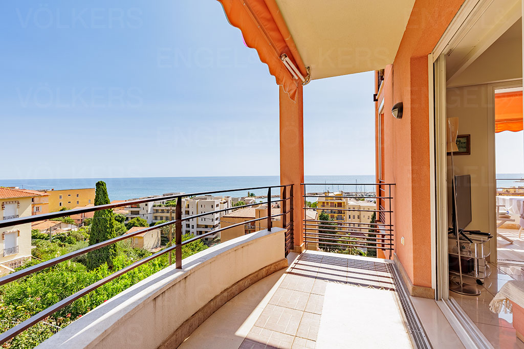 Bel appartement 3 pièces en avant dernier étage d'une surface 74 m² avec 2 terrasses ensoleillées de 21 m2 avec une vue magnifique sur la mer et la vieille ville de Menton.
