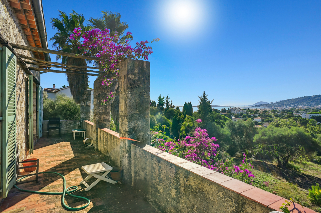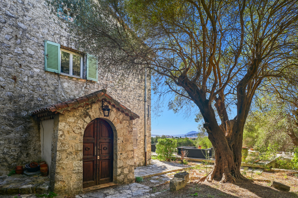 Édifiée sur un magnifique terrain en restanques de 4 167 m² planté d'oliviers centenaires, la propriété bénéficie d'une exposition Ouest et d'une vue imprenable sur la mer, les Îles de Lérins et le massif de l'Estérel.