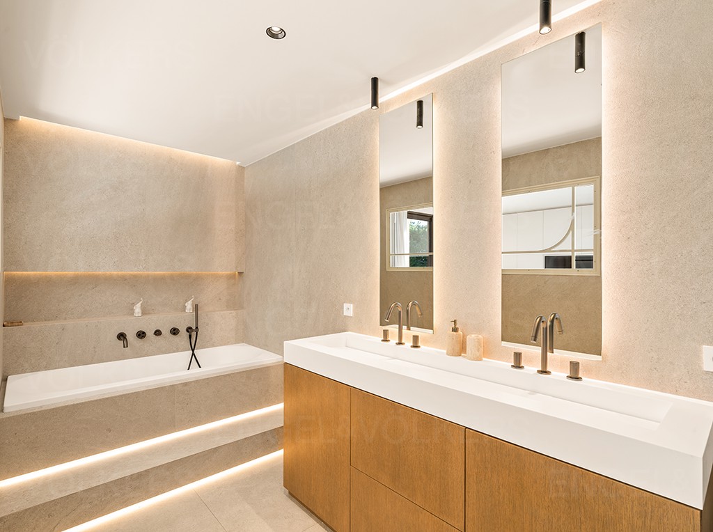 Le niveau inférieur offre une chambre de maître spacieuse avec sa salle de bain dotée d'une baignoire et d'une douche, un grand dressing et des toilettes séparées. 2 autres chambres avec 2 salles d'eau en suite sont situées de l'autre côté du couloir. Chaque chambre donne sur une terrasse ou un balcon. Résidence bien entretenue avec ascenseur, façade ravalée en 2020.