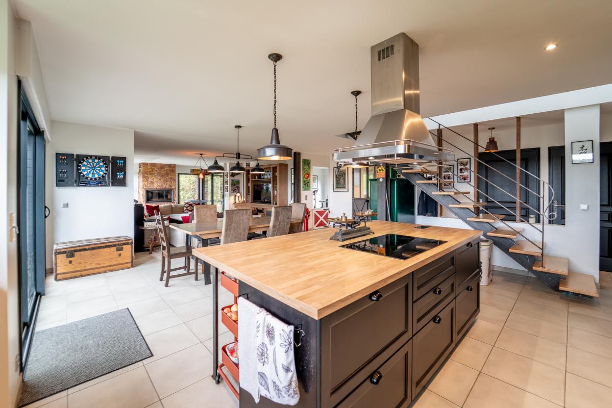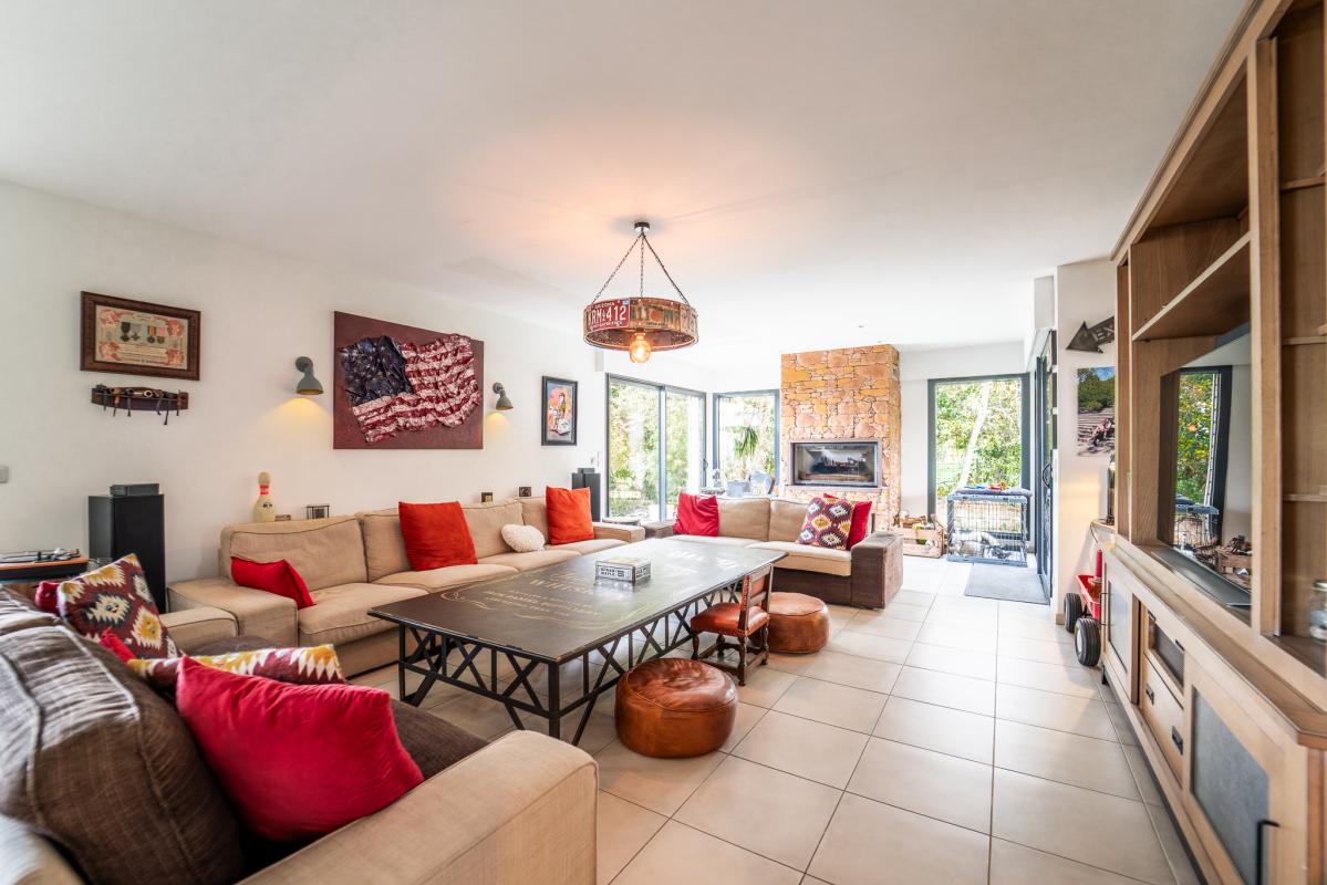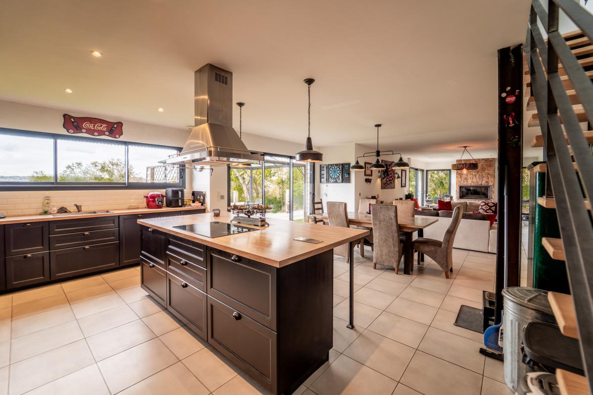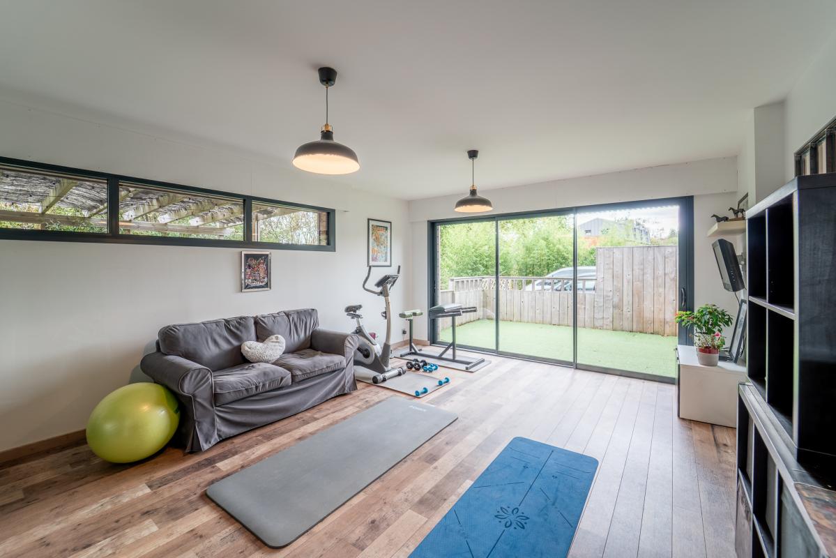 Sur deux niveaux, de vastes espaces présentent une pièce de vie de 80m², quatre chambres avec chacune sa salle d'eau et une salle de sport.