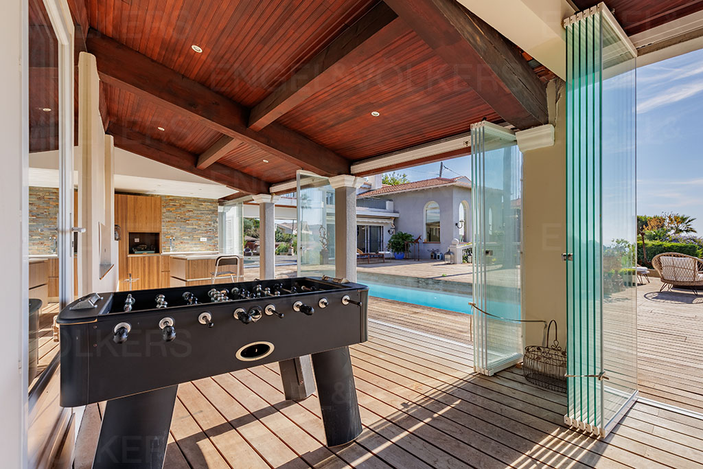 A l'extérieur, vous trouverez une grande cuisine d'été avec pool house offrant une superbe vue sur la mer ainsi qu'une salle de sport.