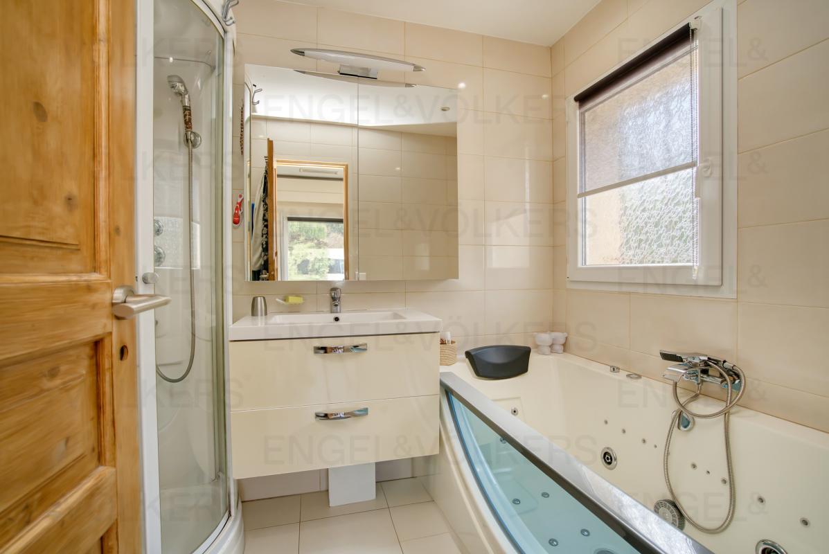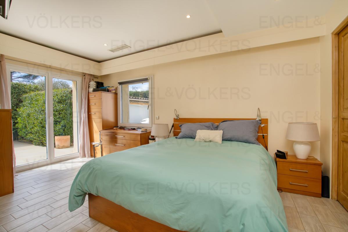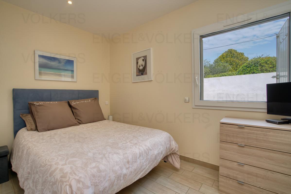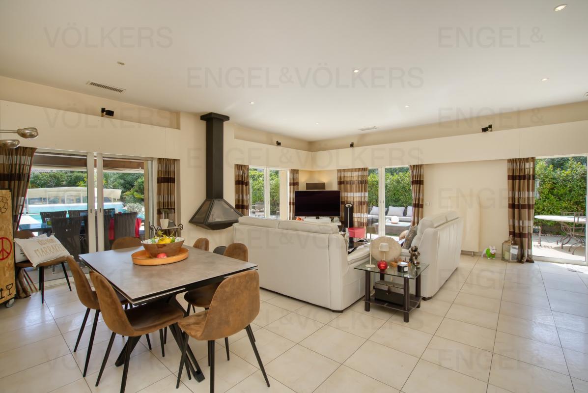 De plain-pied, la villa se compose d'une cuisine ouverte sur un spacieux salon-séjour, offrant une vue agréable sur la terrasse et la piscine. L'espace nuit comprend une chambre avec salle de bains équipée d'un bain balnéo, ainsi que deux autres chambres et deux salles d'eau. Vous trouverez également une buanderie et un cellier pour plus de praticité.