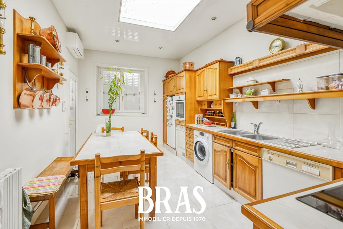 Passée la porte principale, une entrée spacieuse dessert un vaste séjour et une grande cuisine familiale, tous deux ouverts sur un jardin clos et verdoyant, véritable havre de paix en centre-ville. Deux autres salons baignés de lumière complètent les pièces de vie du rez-de-chaussée.