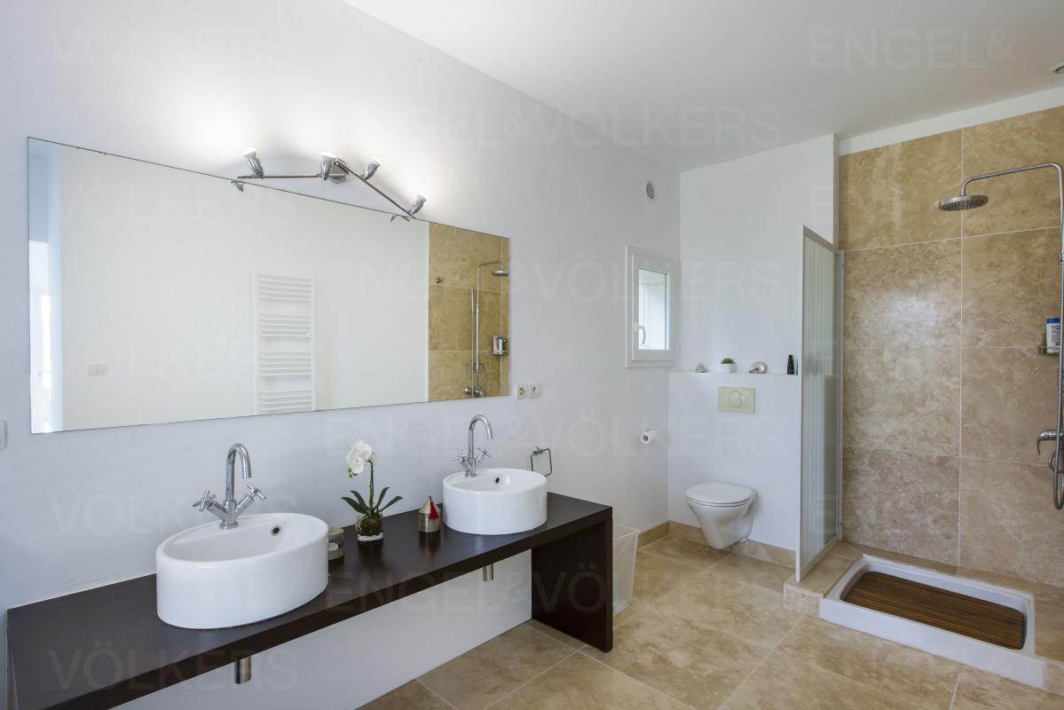 Le rez-de-jardin abrite deux chambres supplémentaires donnant sur une seconde terrasse face à la mer d'environ 96 m2, une salle de jeux, une salle d'eau ainsi qu'une buanderie, offrant des espaces confortables et fonctionnels pour recevoir famille et amis.