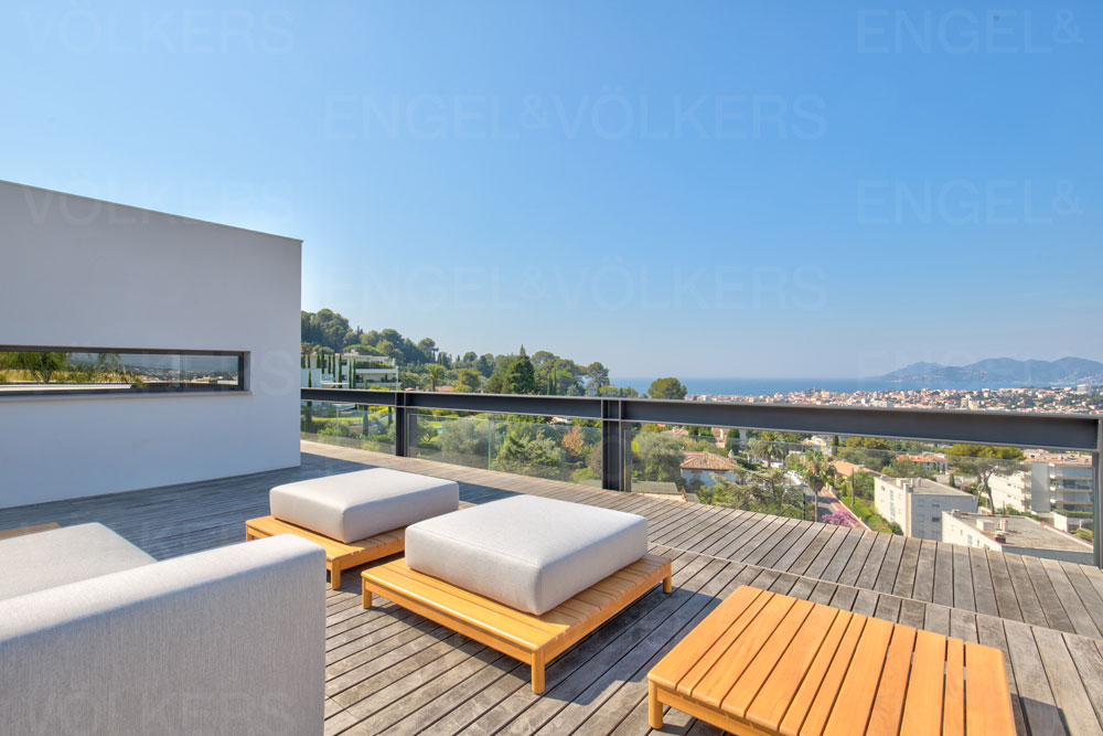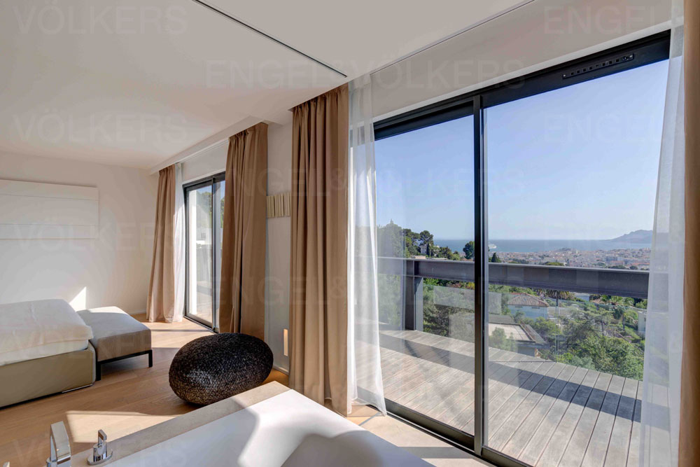 Idéalement située dans un quartier très résidentiel, à deux pas de la mairie du Cannet et à seulement 2 km des plages et des ports de Cannes, au coeur des 7 collines s'étageant en pente douce, cette villa, réalisée dans le plus pur style californien, bénéficie d'une vue panoramique mer exceptionnelle des îles de Lérins jusqu'au massif de l'Estérel.
