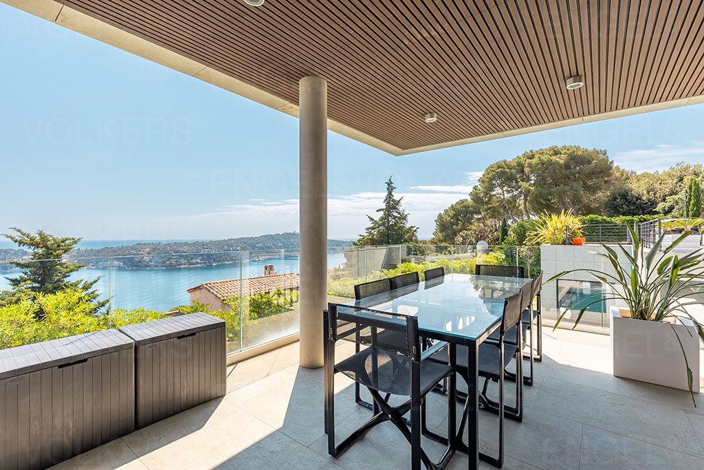 Cette magnifique villa lumineuse, avec plusieurs terrasses, des jardins paysagers et de belles vues sur la mer sur la baie de Villefranche et le Cap Ferrat.