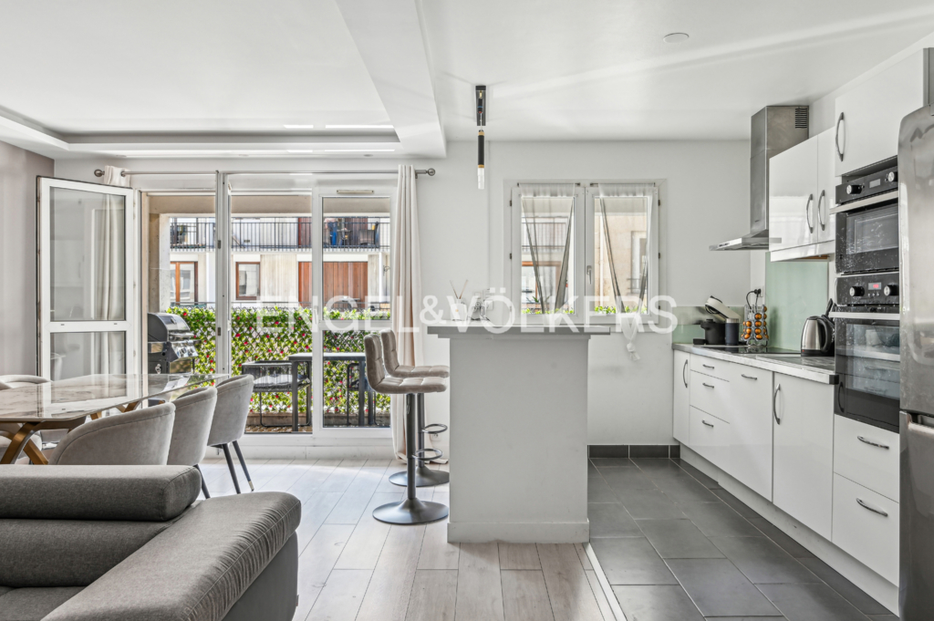Entièrement rénové avec des prestations haut de gamme, l'appartement s'ouvre sur un séjour spacieux et lumineux donnant sur un balcon de 7m², et une cuisine américaine entièrement équipée.
