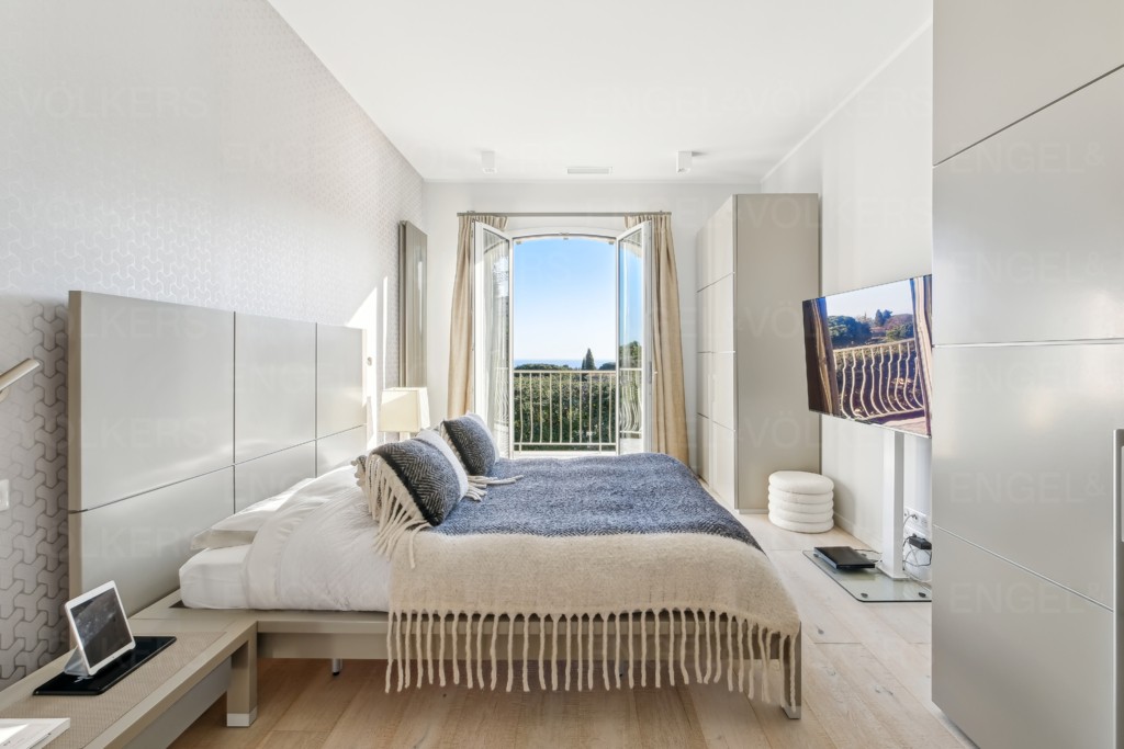 Située à proximité directe de Mougins, et à 20 min de Cannes et du bord de mer, dans un secteur résidentiel privilégié, cette belle villa des années 60 bénéficie d'une rénovation complète alliant confort moderne et esthétique contemporaine. Elle offre une belle vue mer et une luminosité optimale grâce à son exposition plein sud. D'une superficie de 258 m² habitables, sur un terrain plat et arboré de près de 2 500 m², chaque espace a été pensé pour offrir des volumes généreux et un cadre de vie raffiné.