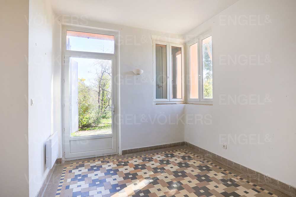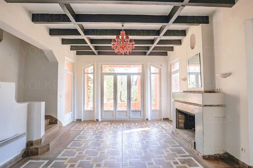 La maison existante propose de beaux volumes avec actuellement trois chambres, chacune avec sa salle de bain, un bureau, une cuisine indépendante et une salle à manger séparée, idéale pour les réceptions. Les espaces intérieurs sont lumineux, bien agencés et conservent leur charme.
