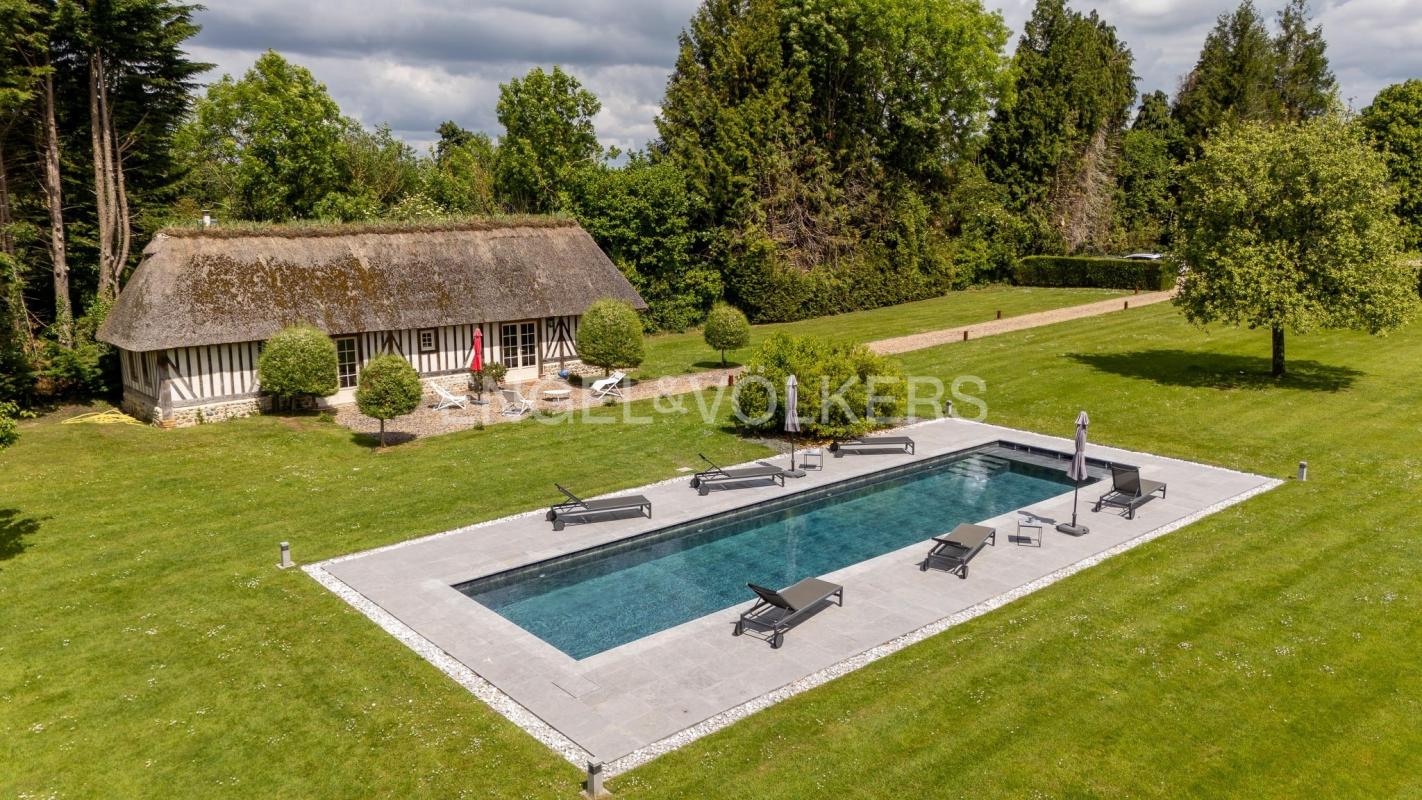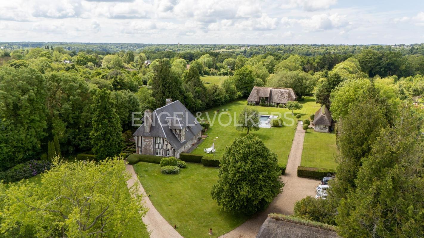 À seulement 6 km de Honfleur et 18 km de Deauville, cette élégante propriété en pierre d'environ 330m² habitables, se déploie au coeur d'un parc paysagé clos, d'une surface de près de 2 hectares, à l'abri des regards.