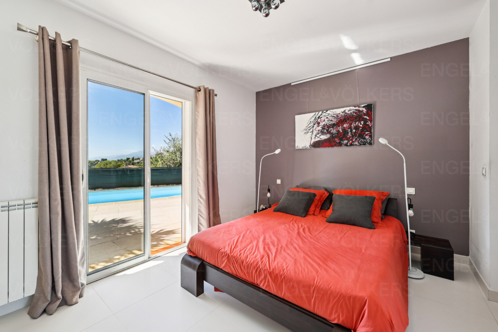 Au calme absolu, la villa est composée de : un salon spacieux et lumineux avec accès direct à la terrasse et à la piscine, une cuisine indépendante, 4 chambres confortables, 2 salles de bains, 1 salle de douche, 3 WC.
