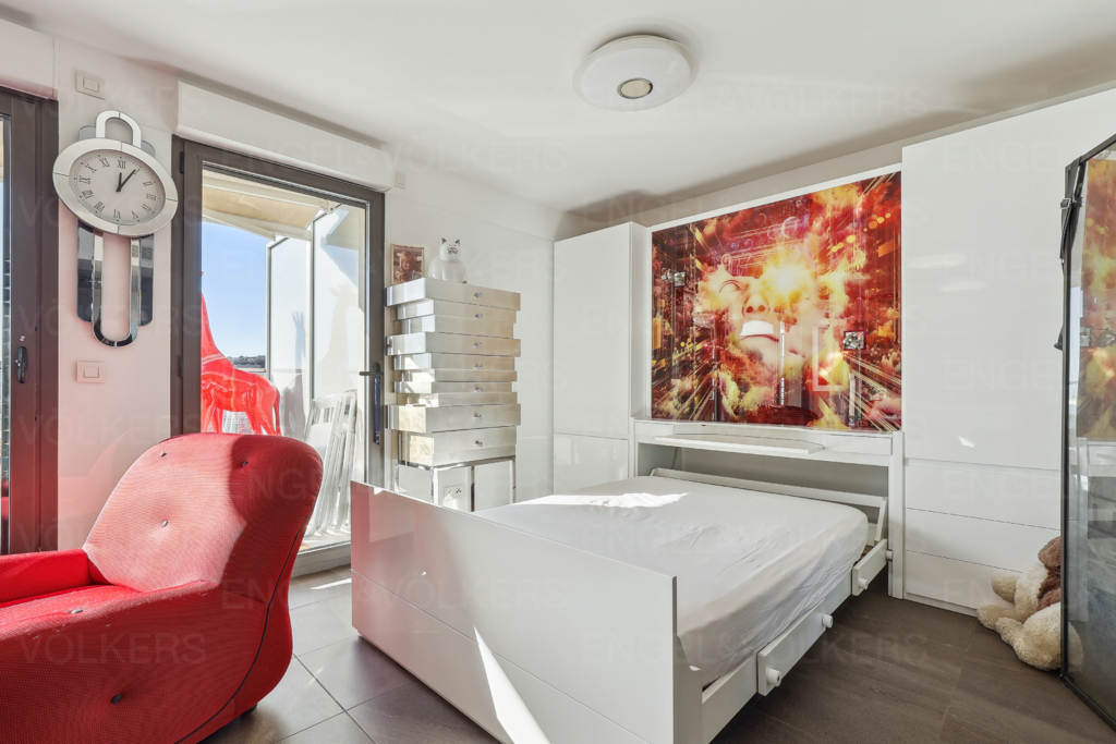 L'actuelle propriétaire a repensé chaque détail pour un confort optimal : un lit escamotable électrique libère l'espace en un clin d'oeil pour laisser place à un bureau élégant, tandis que les rangements muraux intégrés garantissent une organisation parfaite. Si vous préférez une configuration plus traditionnelle, il est tout à fait possible de créer une chambre indépendante.