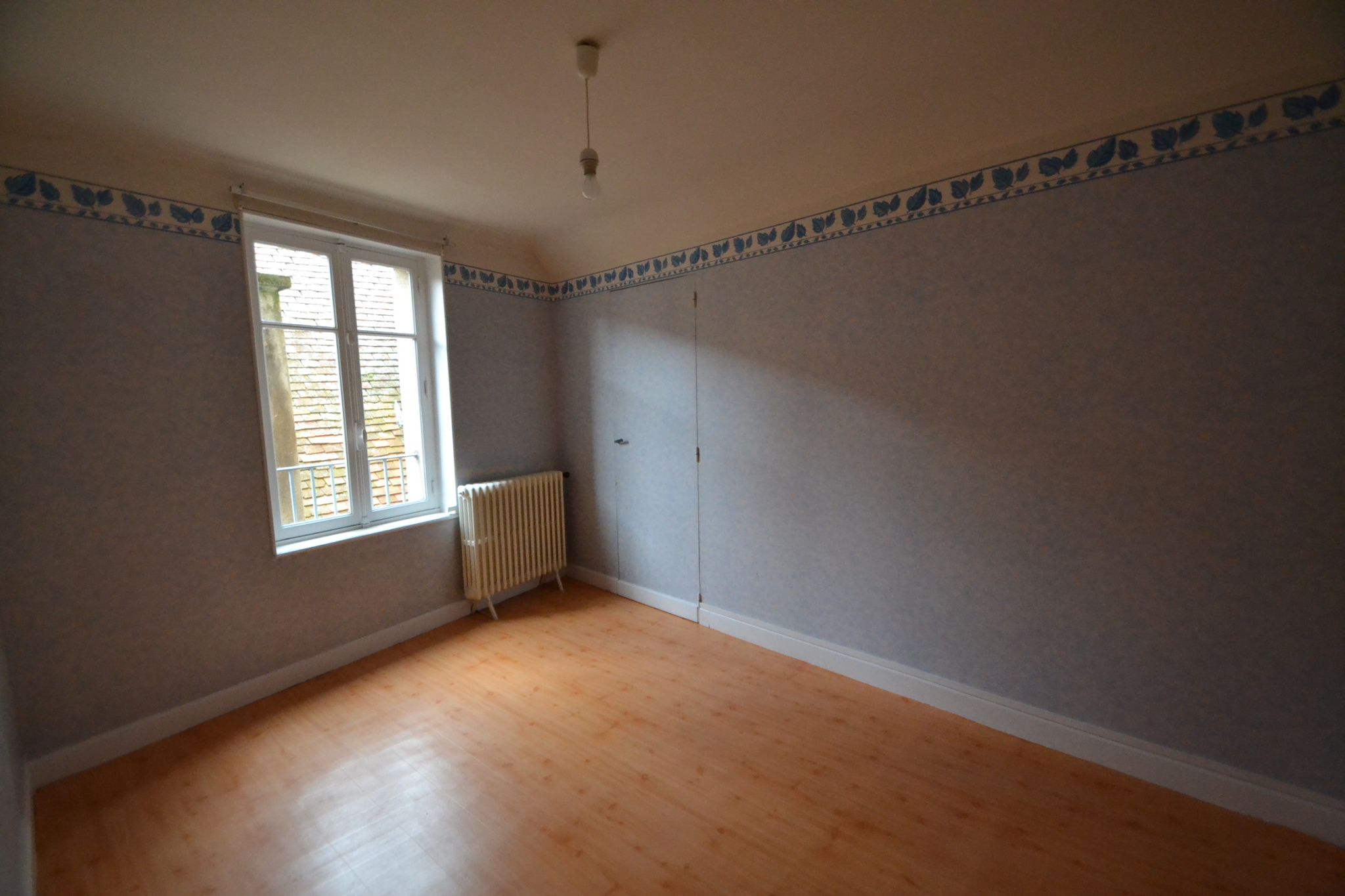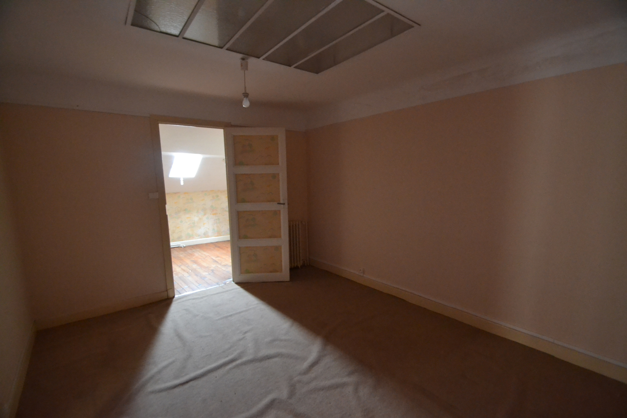 En centre ville, une maison d'habitation élevée sur garage, comprenant une cuisine, un séjour, un salon, une chambre, une salle d'eau, un wc indépendant, au deuxième étage: une chambre avec un placard sous pente, une pièce avec un cabinet de toilette, un grenier. Une terrasse.