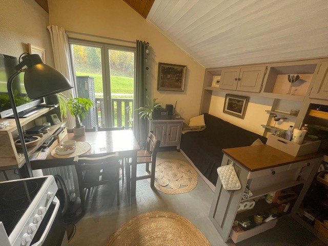 EN EXCLUSIVITE Sur les hauteurs de la commune d'Habère Poche un appartement de type T2 en partie rénové d'une surface utile de 26.65 m2 dont 22.15 m2 loi carrez au dernier étage d'une copropriété comprenant une entrée, un coin nuit ( chambre ), salle de bains/wc, séjour ouvert sur kitchenette et un balcon. DPE - E - à partir du 01/01/2026