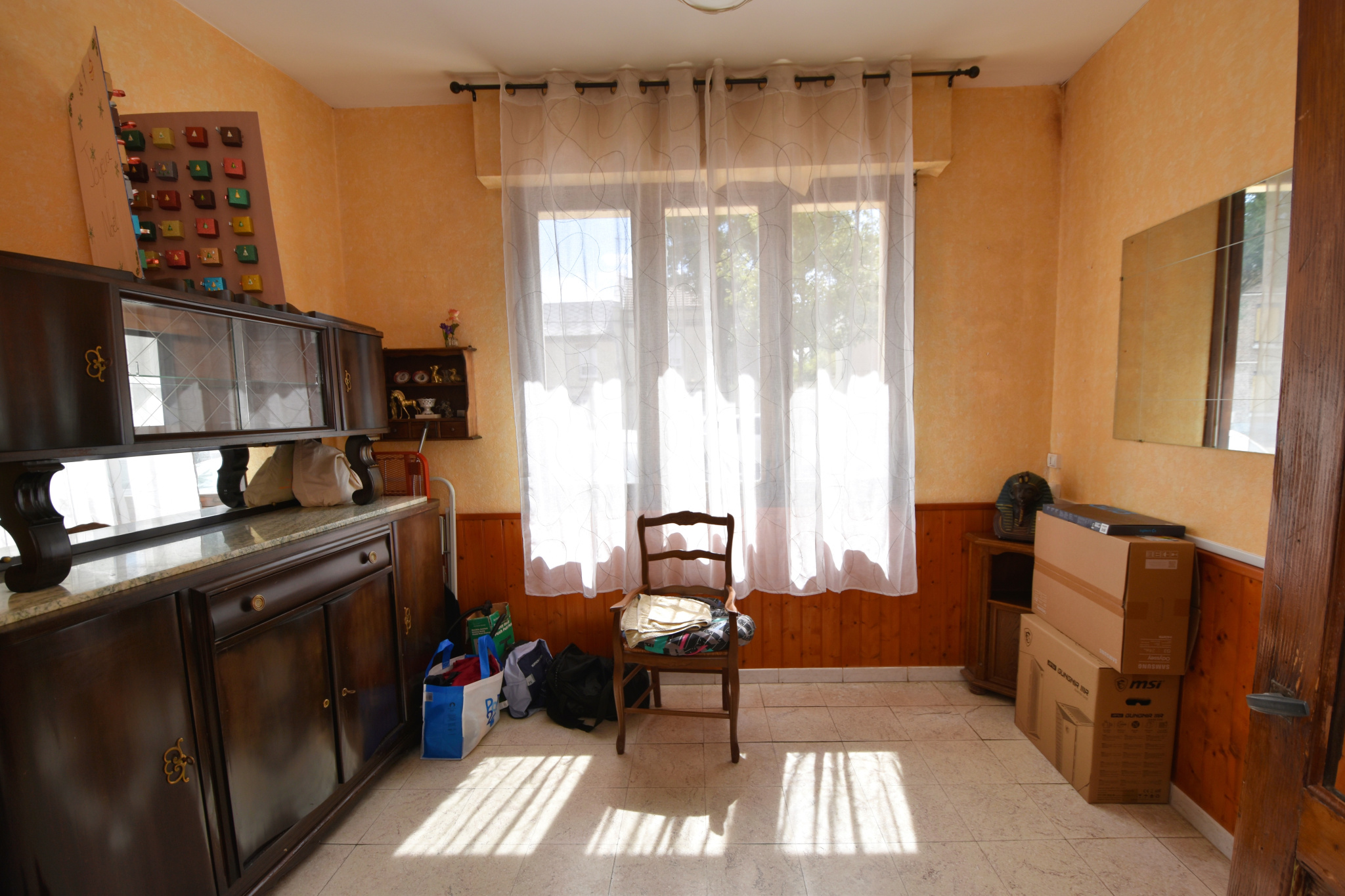 - Au rez-de-chaussée : couloir d'entrée (face escalier), double séjour d'environ 30m2 avec poêle à gaz de ville, cuisine, salle de bains (avec W.C.).