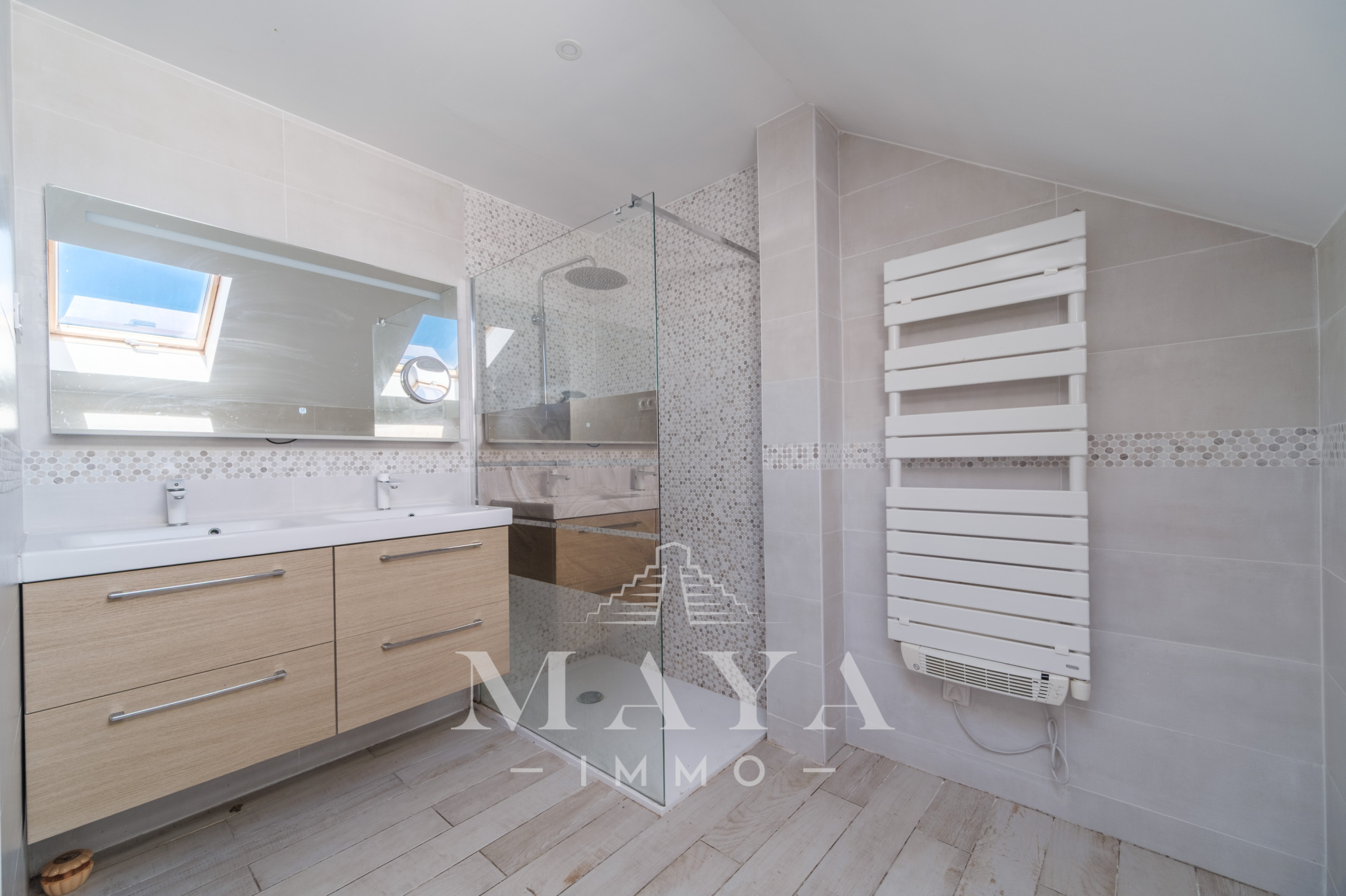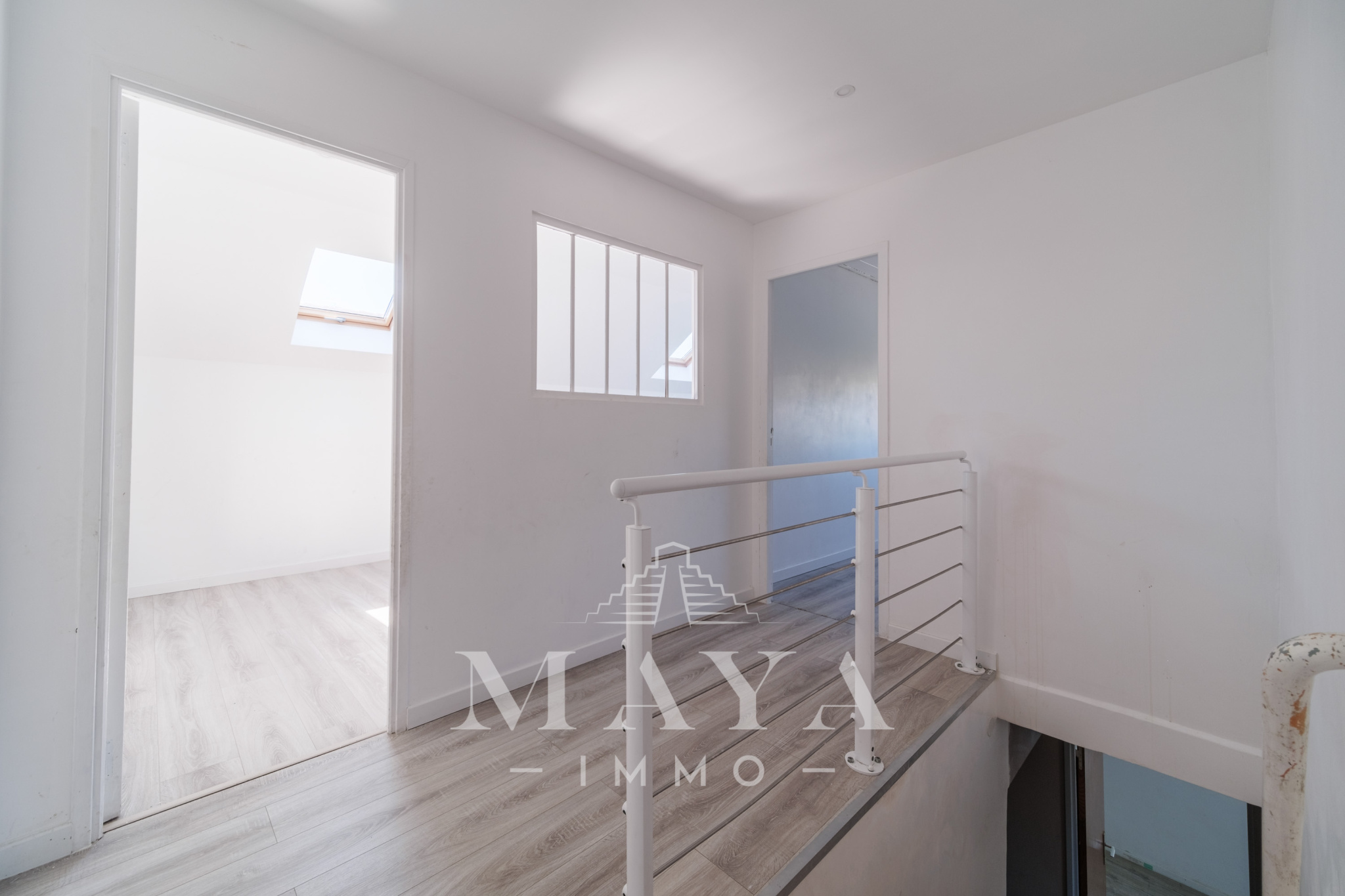 A l'étage, une mezzanine baignée de lumière, deux belles grandes chambres de 18m2 chacune, une troisième chambre de 16m2 avec un espace dressing, une salle d'eau entièrement rénovée avec douche à l'italienne, WC et double-vasque.
