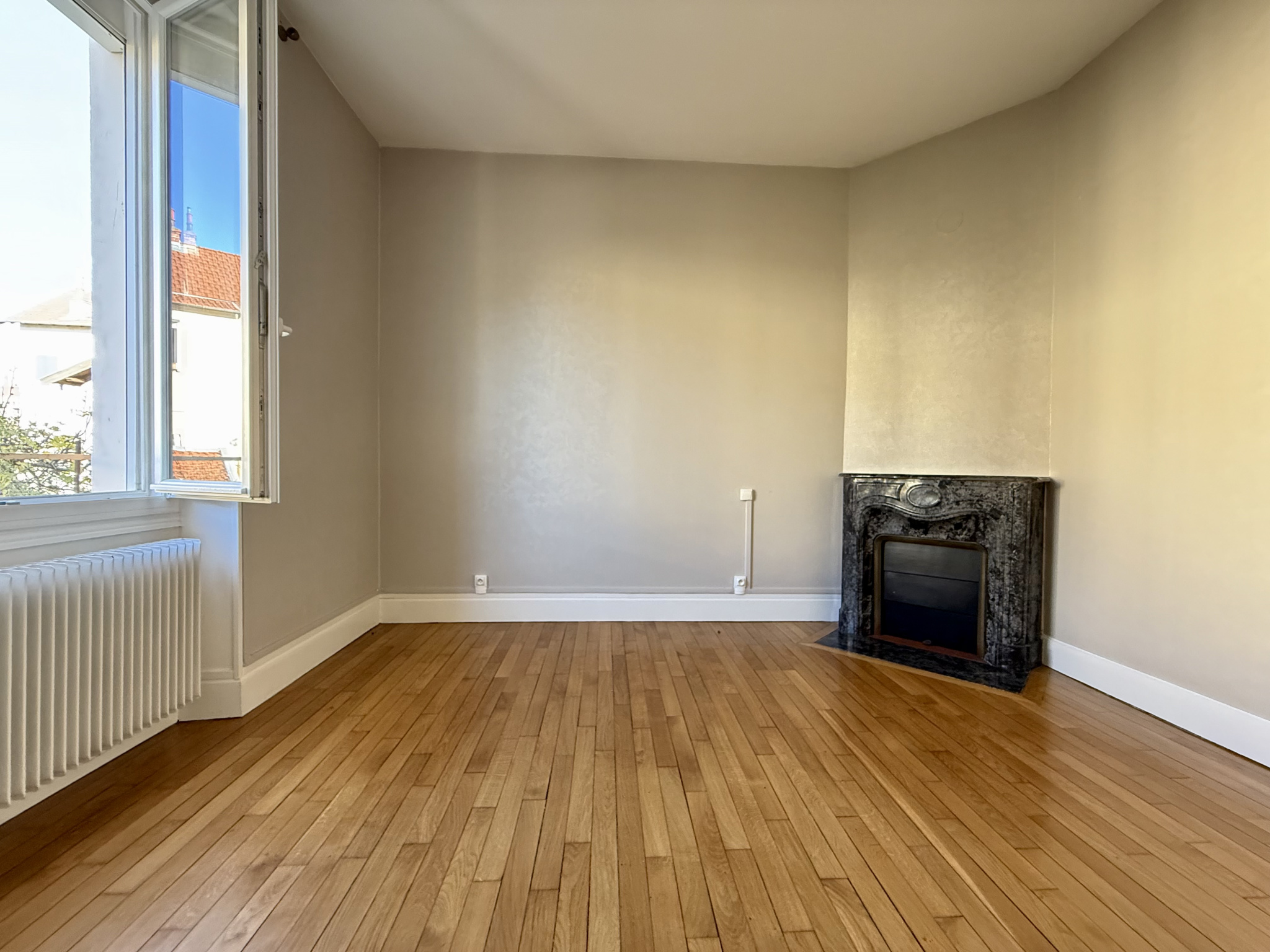 Charme de l'ancien préservé : élégantes cheminées en marbre, sublimes carreaux de ciment, belle hauteur sous plafond.