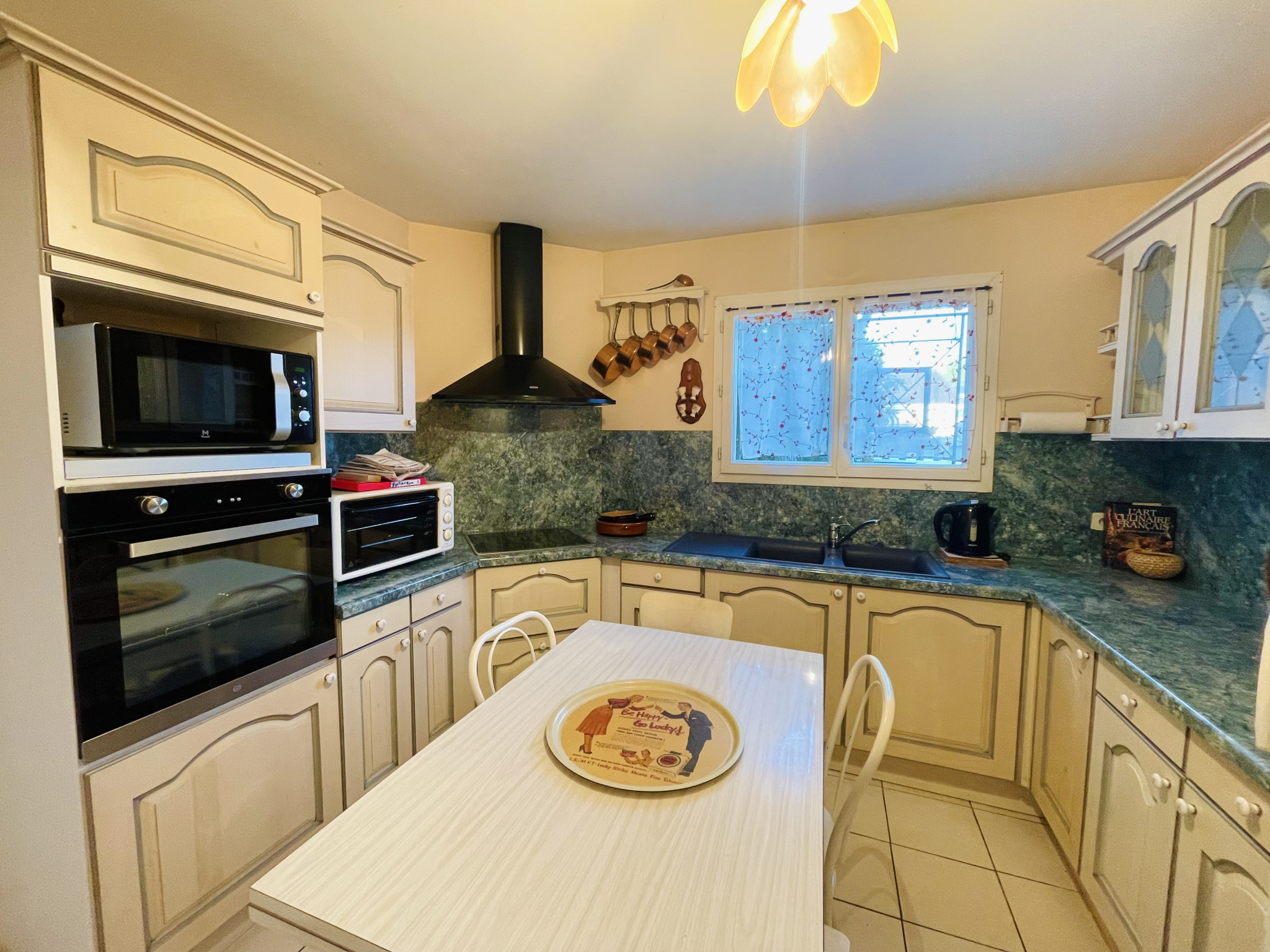 D'une surface d'environ 100 m2, cette maison très lumineuse offre un espace de vie convivial comprenant un séjour spacieux de plus de 30 m2, idéal pour recevoir famille et amis. La cuisine indépendante, attenante au séjour, dispose d'un cellier et d'un accès direct à l'ancien garage, aujourd'hui aménagé en arrière-cuisine fonctionnelle.