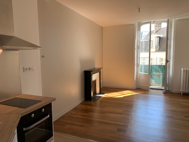 LAVAL; hyper centre rive droite, un appartement de type 2 rénové en 2020. Situé au 1er étage, il comprend : une entrée sur parquet, un séjour sur parquet avec cheminée décorative, une cuisine équipée ouverte sur le séjour, une chambre avec placard, une salle d'eau et un WC. L'appartement dépend d'une copropriété de 4 lots principaux. Chauffage individuel au gaz de ville. Locataire en place (bail a effet du 1er septembre 2025, loyer 485EUR + 35EUR de charges). Syndic bénévole.