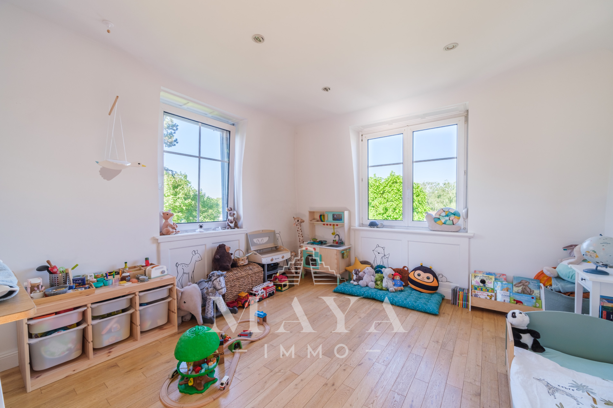 Au premier niveau, une entrée, une belle pièce de vie de 24m2, une cuisine séparée moderne et toute équipée, une chambre de 15m2, une suite parentale de 23m2 avec salle d'eau et dressing, un WC séparé avec douchette et lave-mains.