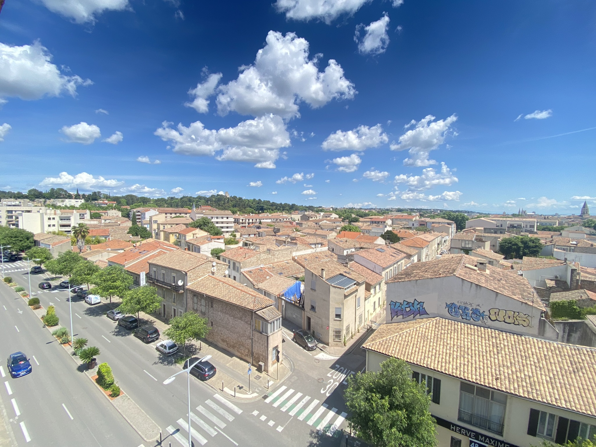 Nîmes centre ville, secteur pompidou, au 6ème et dernier étage d'une résidence fermée avec ascenceur et gardien ; Belle opportunité pour cet appartement T3/4 traversant d'une surface de 65.60 m2 LC.
