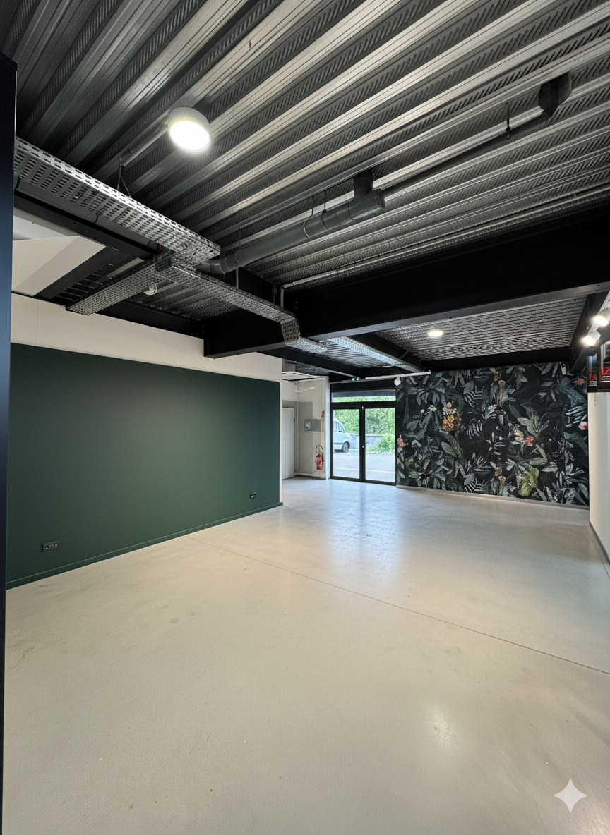 Un bâtiment commercial composé de deux surfaces de vente non communicantes, comprenant chacun une superficie de vente, un local technique et un espace de stockage.