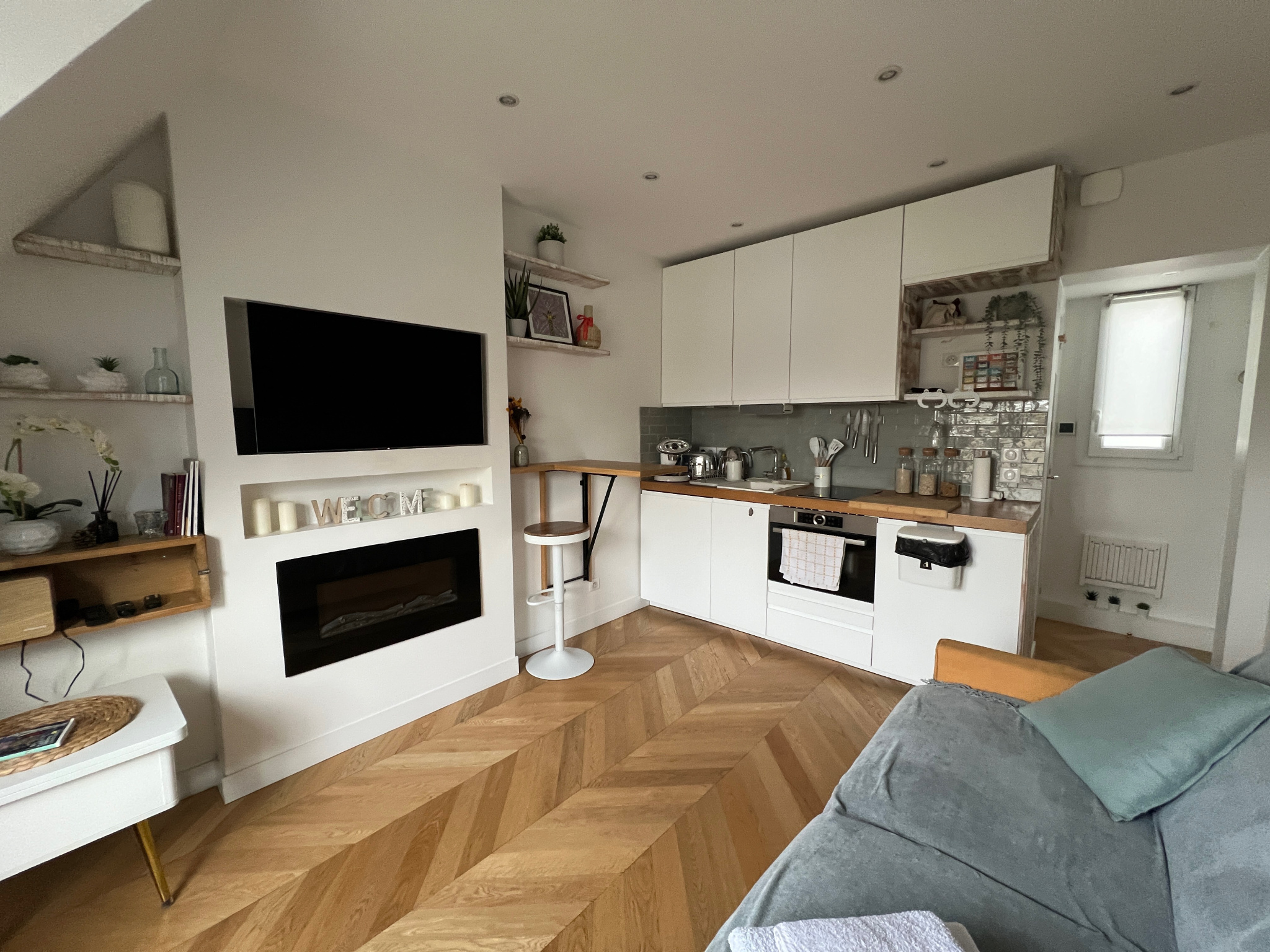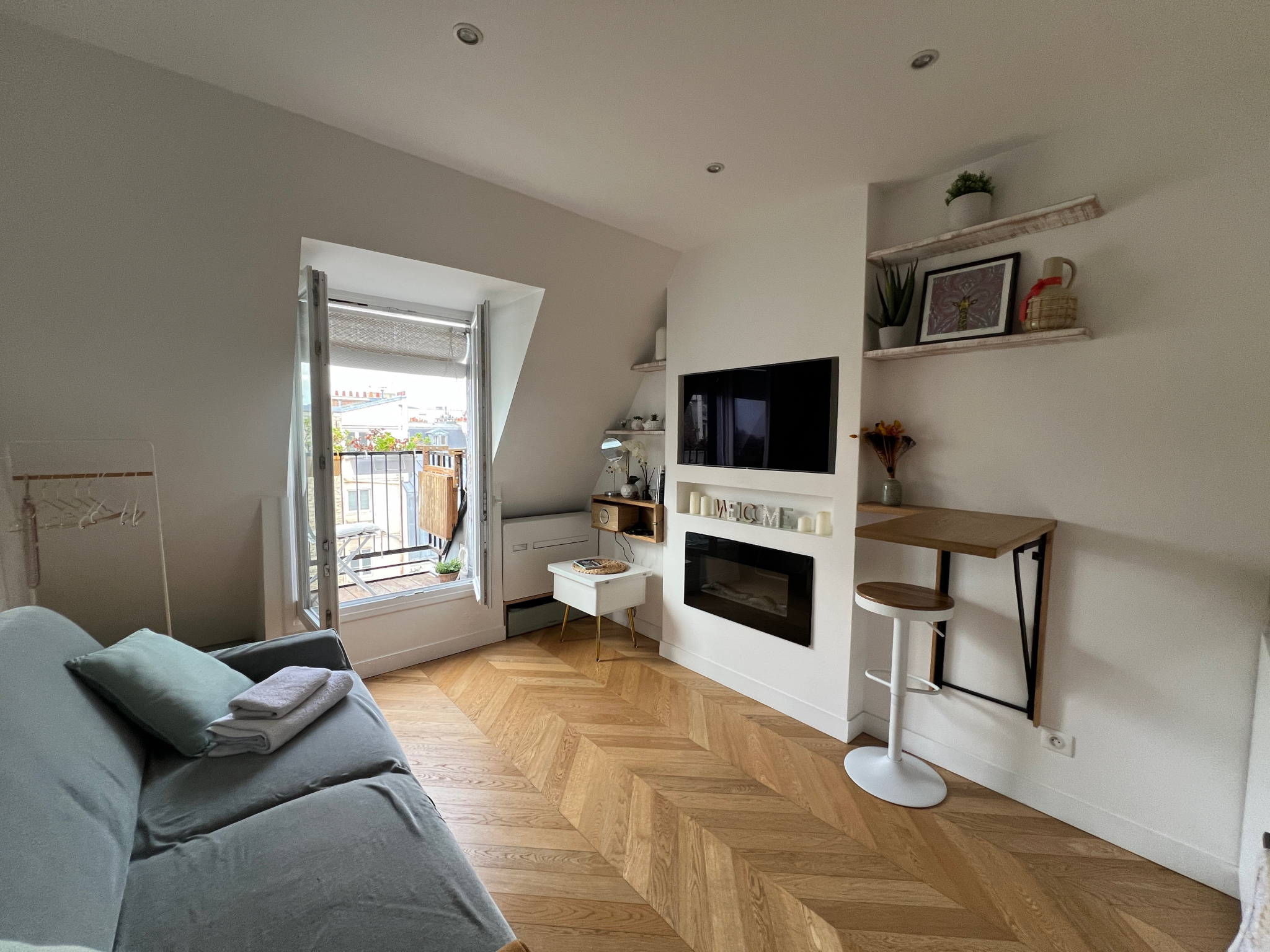 Assas/ND des champs/Luxembourg. RARE OFFRE, PRESTATIONS HAUT DE GAMME, BALCON, VUE, PLEIN SOLEIL, DERNIER ETAGE, ASCENSEUR, IMMEUBLE PDT STANDING. A toute proximité du jardin du Luxembourg, 15m2 au sol (12.88 LC), un logement tout confort CLIMATISE, situé au sixième étage avec ascenseur composé d'une entrée, une pièce principale avec cuisine entièrement équipée donnant sur un balcon offrant une vue sur monument complétement dégagée (Tour Eiffel et Sacré Coeur), une salle de douche avec sanitaire. A VOIR ABSOLUMENT.