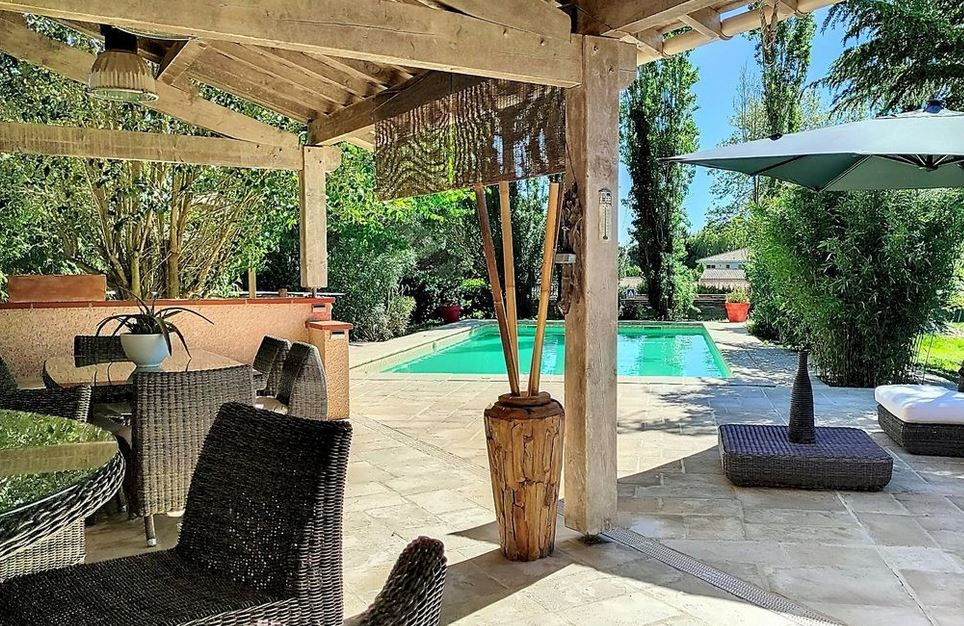 A l'extérieur, un espace pool house magnifique avec sa terrasse abritée de 40m2 et une piscine au sel de 6x10m vous permettront de profiter pleinement des beaux jours et de partager des moments de convivialité