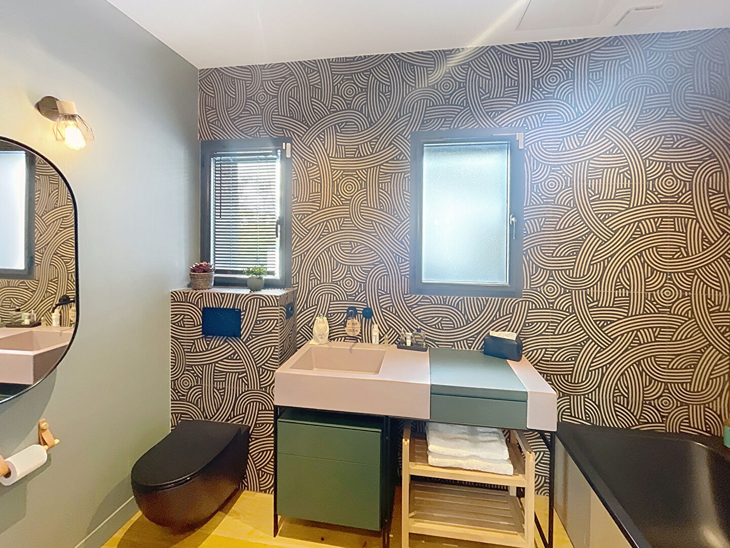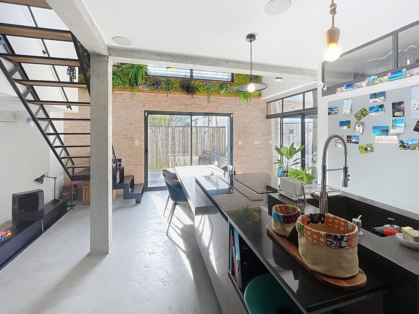 L'agence Laforêt vous propose cette maison contemporaine, atypique et haut de gamme à Nieul sur mer. La maison se compose d'un salon en contre-bas, une cuisine de très haute qualité, une belle suite parentale au RDC, une buanderie, un WC. A l'étage, une chambre avec verrière, une salle de bains avec WC, une autre grande chambre avec bureau, dressing et mezzanine. Terrasse en IPE orientée sud, volets électriques en brise soleil à lames orientales, une PAC pour le chauffage au sol et une PAC gainable. Equipements soignés, peu de consommation et d'entretien.