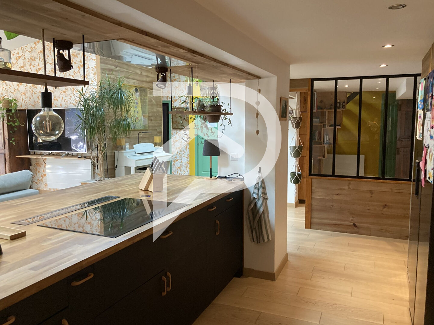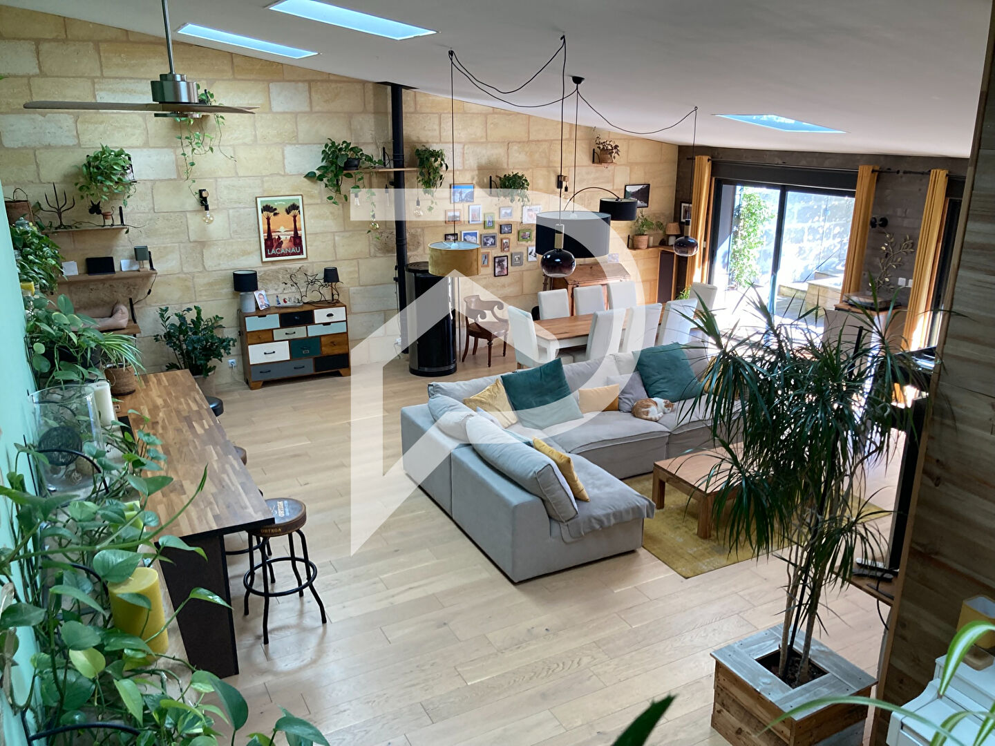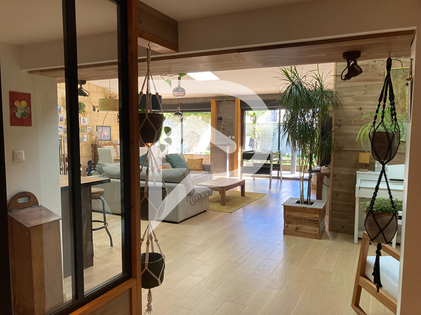 Aux allures de Loft , vous serez sous le charme de sa pièce de vie avec des volumes incroyables et de sa décoration soignée avec ses larges baies vitrées donnant sur un jardin bien exposé avec sa terrasse en bois. Pour un confort optimal, la maison dispose de trois chambres avec chacune sa salle d'eau/de bains.