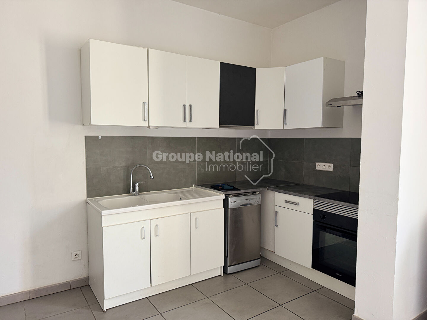 Appartement offrant au 1er étage un salon lumineux avec cuisine semi-ouverte, deux chambres, salle d'eau et buanderie.