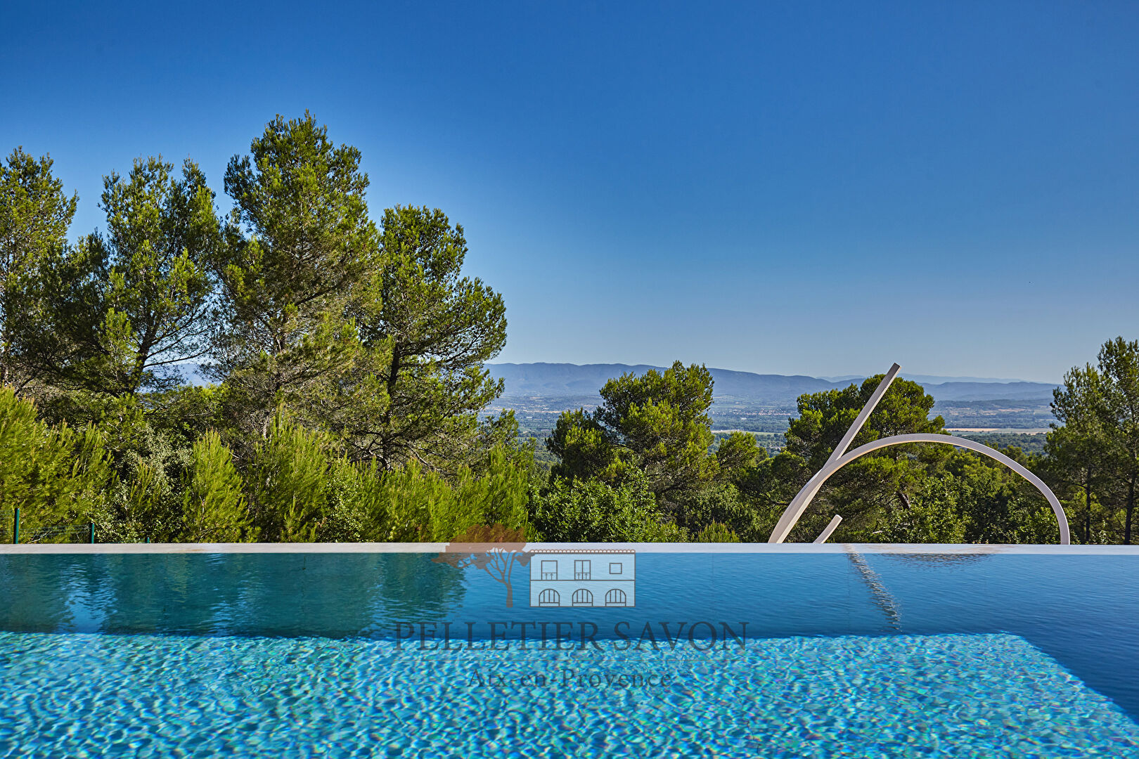 Nichée sur les hauteurs, dans un environnement calme et verdoyant, cette superbe villa contemporaine séduit par son architecture moderne, ses volumes généreux et sa vue imprenable sur le Luberon. Elle est implantée sur un magnifique jardin paysager de plus de 3000 m², entièrement clos, agrémenté d'une grande terrasse et d'une piscine à débordement de 13 x 4 mètres.